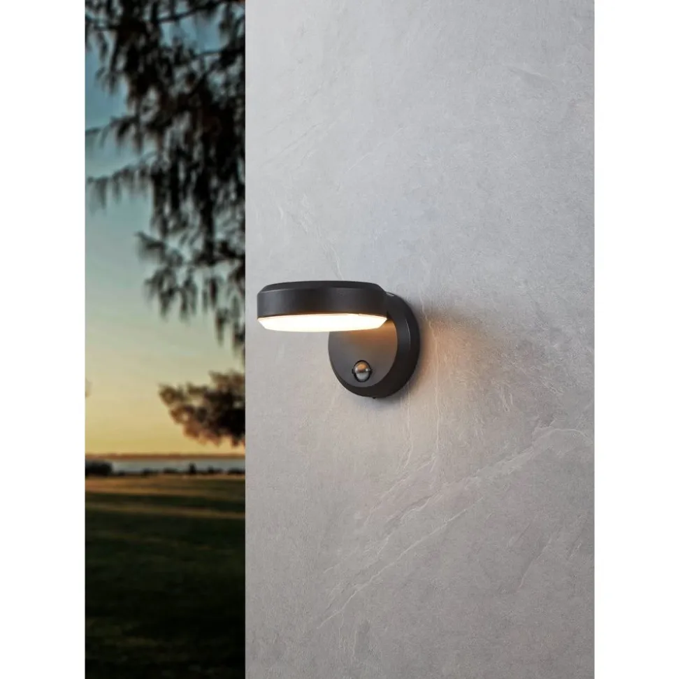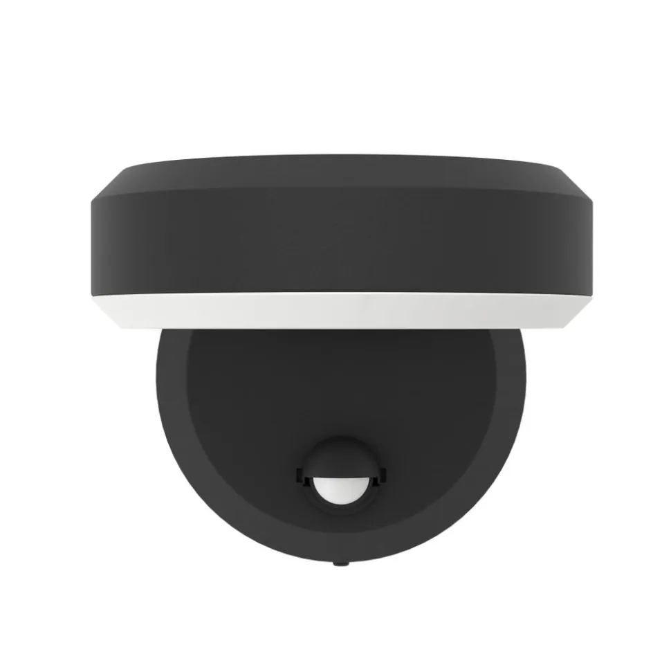 De FORNACI outdoor LED wandlamp bestaat uit een ronde muurplaat van zwart metaal en een lampbehuizing die ook rond is. De geïntegreerde LED’s achter het naar beneden gerichte witte kunststof lichtoppervlak stralen een aangenaam, warm wit licht uit. Het armatuur is beschermd tegen stof en spatwater (IP54), zodat het zonder angst buiten kan worden gebruikt. De wandlamp voor buiten is ook voorzien van een bewegingssensor en schakelt het licht automatisch in. Dit helpt om slecht zichtbare gebieden te verlichten en ongewenste bezoekers af te schrikken. De ingebouwde schemersensor meet het omgevingslicht en activeert het licht alleen wanneer het echt nodig is. Dankzij het eenvoudige ontwerp past deze buitenarmatuur in elke buitenruimte, of het nu direct bij de ingang van het huis of op het terras is.