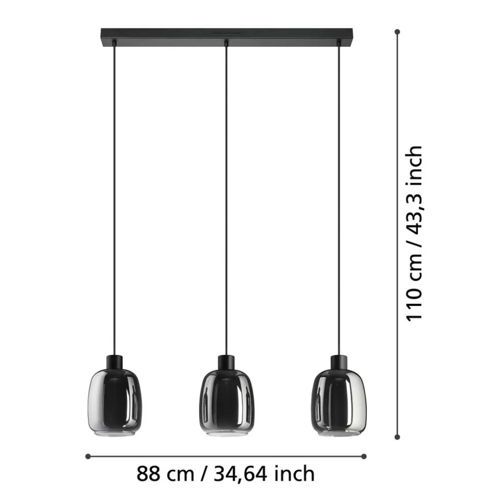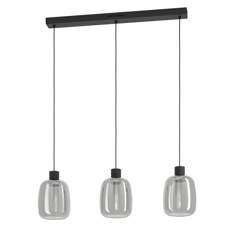 Eglo MOLOCHIO-Z hanglamp staal zwart / glas gestoomd zwart-transparant H: 1100 mm