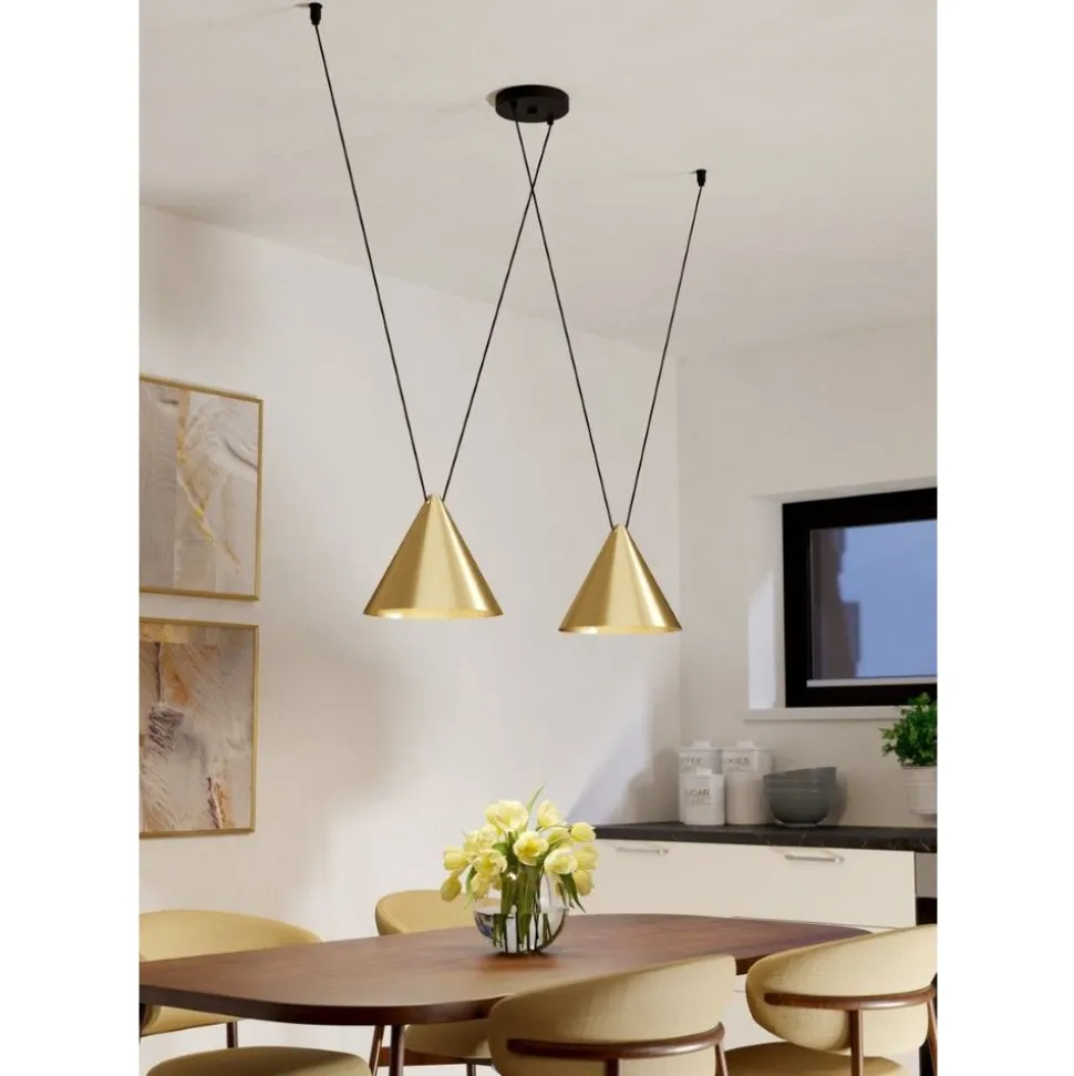 Eglo NARICES 1 hanglamp staal zwart / staal geborsteld messing, goud H: 1100 mm