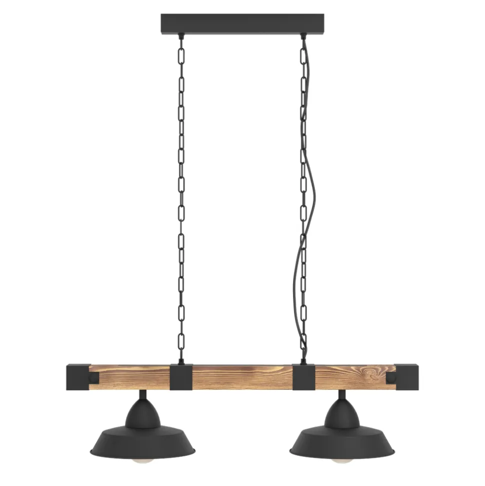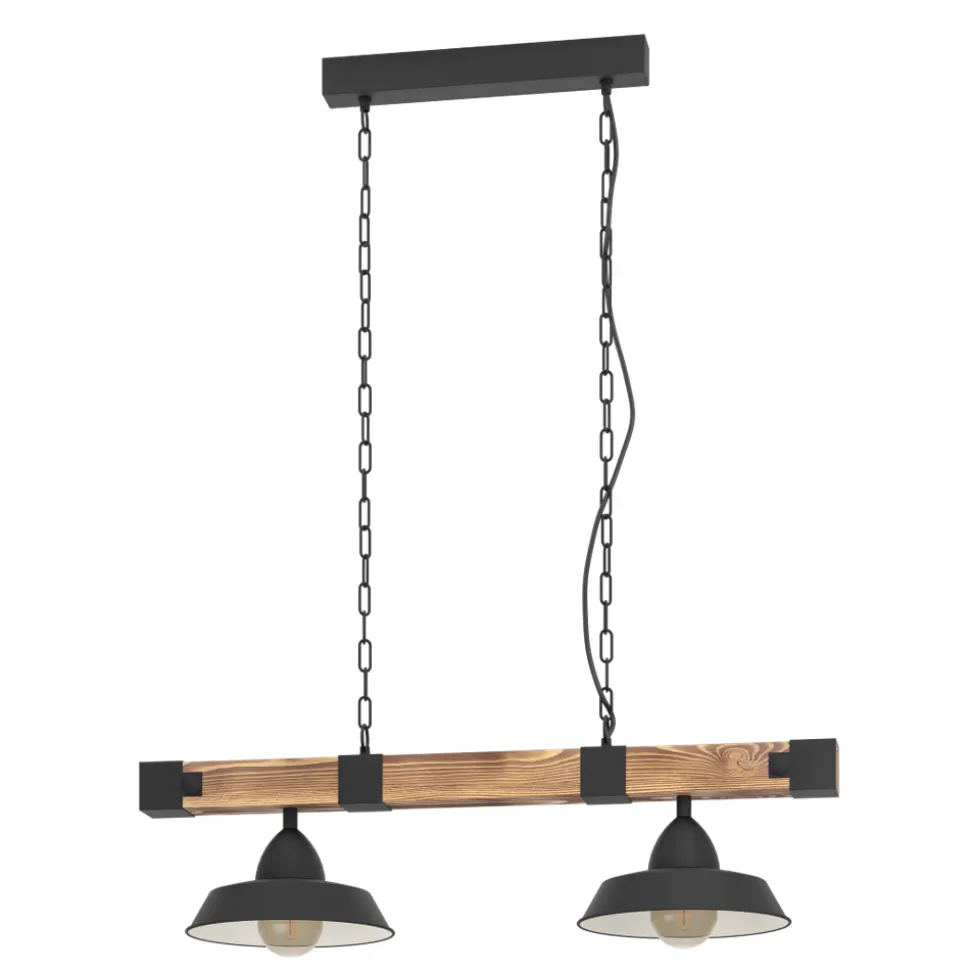 Eglo OLDBURY hanglamp staal, hout zwart, bruin, landelijk H: 1100 mm