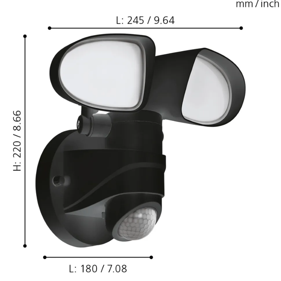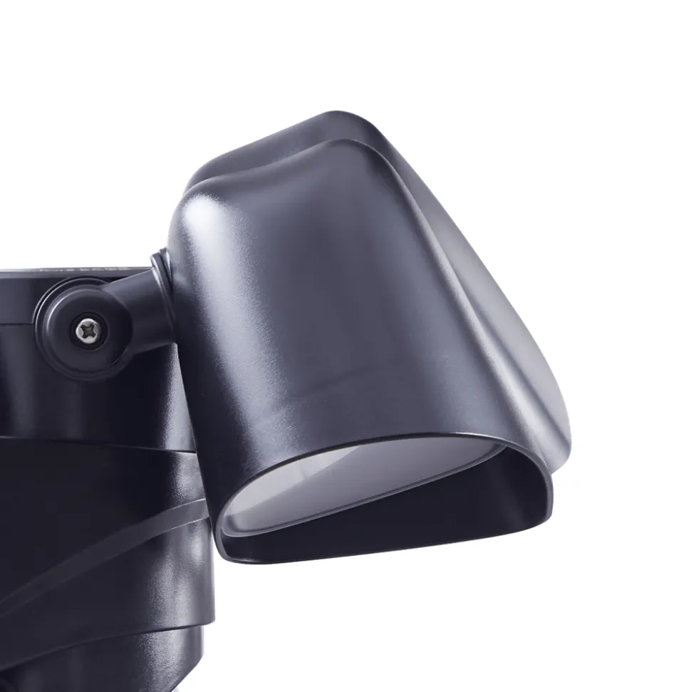 De PAGINO LED buitenwandlamp bestaat uit een zwarte kunststof behuizing en twee beweegbare ronde spots. De LEDs achter de witte kunststof lichtvlakken stralen een krachtig neutraal wit licht uit. De wandlamp is uitgerust met een bewegingsdetector en schakelt het licht automatisch in om slecht zichtbare zones te verlichten en ongewenste bezoekers af te schrikken. De geïntegreerde schemersensor meet het omgevingslicht en schakelt het licht alleen in als het echt nodig is. De spatwaterdichte (IP44) buitenarmatuur kan zonder problemen buiten worden gebruikt. De spots kunnen zowel naar rechts en links als naar boven en beneden worden gedraaid en zorgen voor een gerichte, veilige en betrouwbare verlichting van je buitenruimte, of het nu gaat om de verlichting van een veld, de ingang van het huis of een carport.