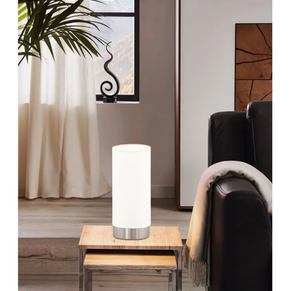 Eglo PASTERI Tafellampen staal nikkel-mat / textiel wit H: 255 mm | Ø 120 mm
