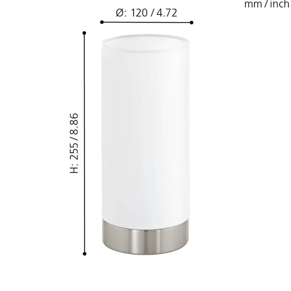 De PASTERI tafellamp bestaat uit een cilindervormige kap van wit textiel en een voet van mat nikkel metaal. Met zijn eenvoudige ontwerp past deze tafellamp perfect in bijna elke interieurstijl. De kabelschakelaar maakt het aan- en uitschakelen gemakkelijk. Hij zorgt voor een aangename verlichting in je kamer, of het nu in de slaapkamer op het nachtkastje is, of in de woonkamer op een console. De lichtbron is niet inbegrepen. De lamp is compatibel met elke E27 lamp.
