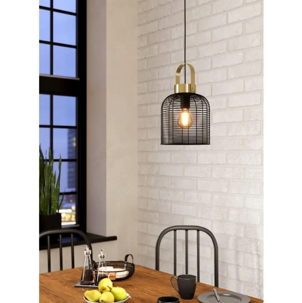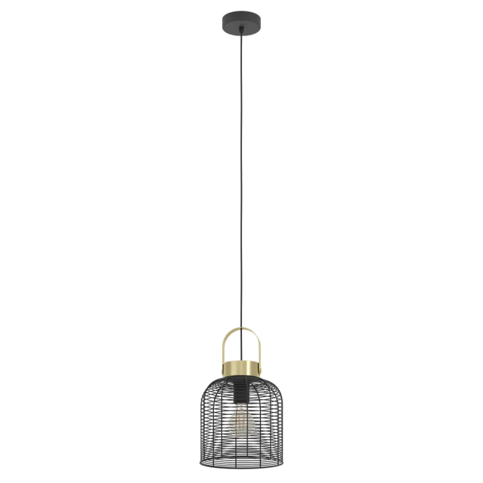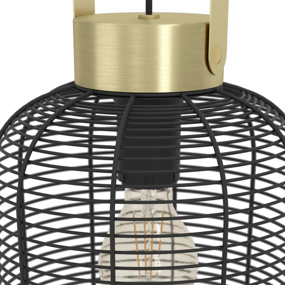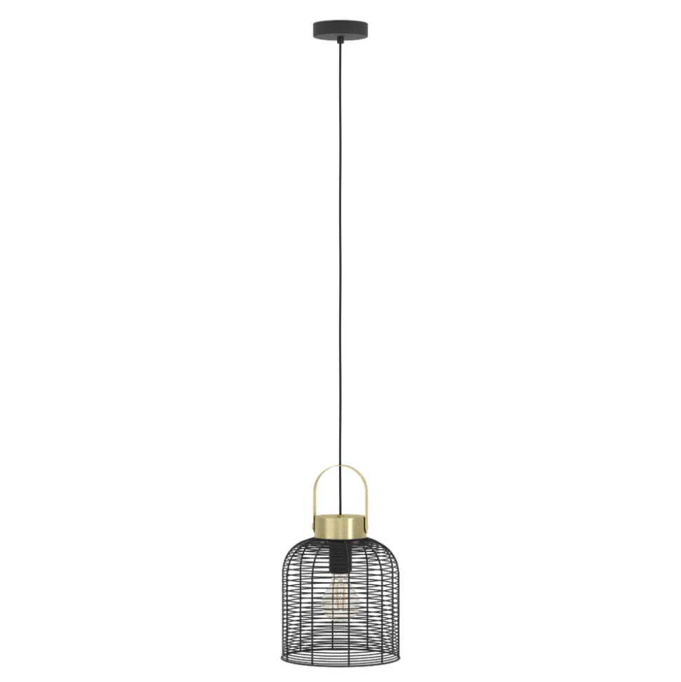 Eglo ROUNDHAM hanglamp staal zwart, geborsteld messing H: 1100 mm | Ø 220 mm