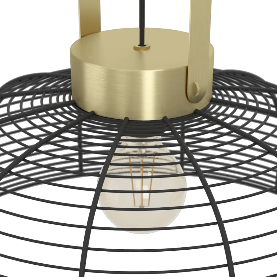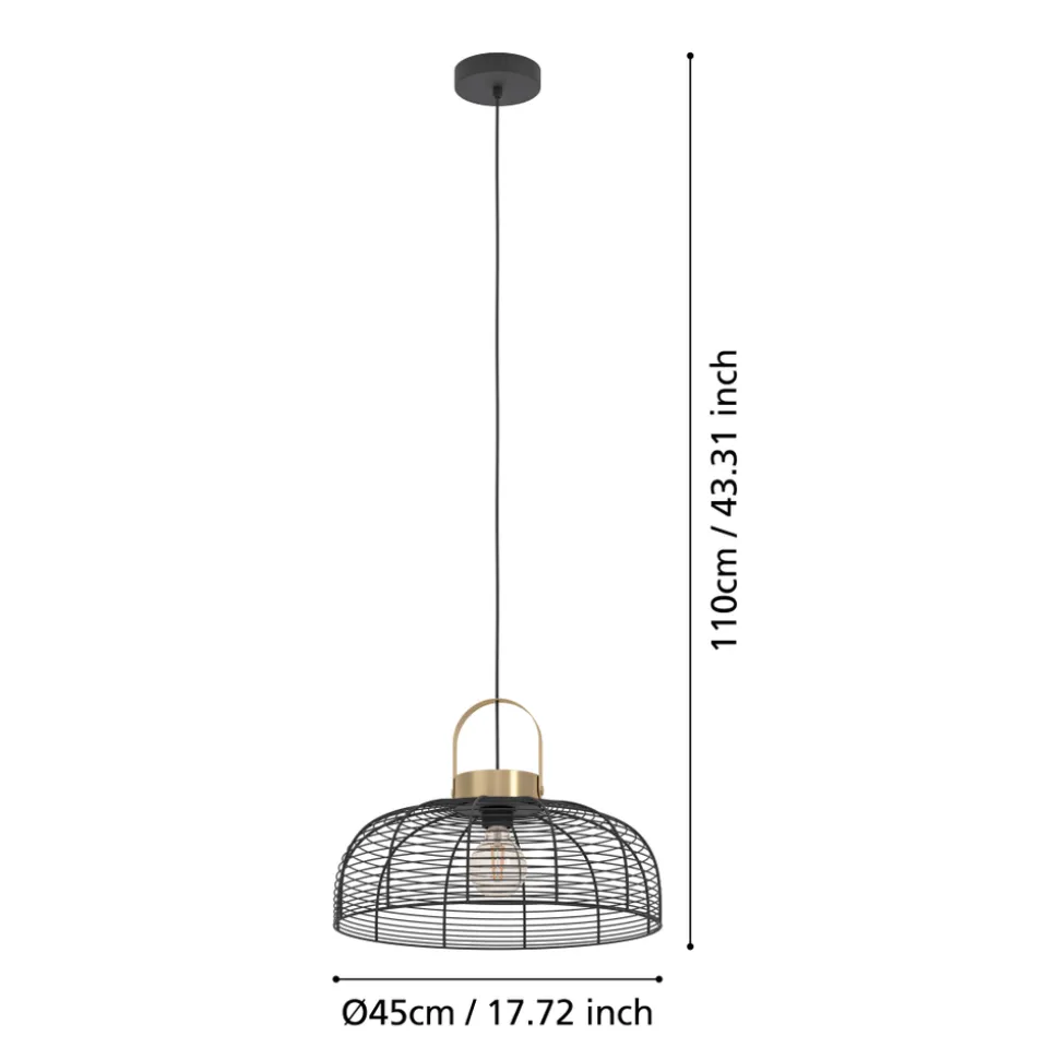 Eglo ROUNDHAM hanglamp staal zwart, geborsteld messing H: 1100 mm | Ø 450 mm