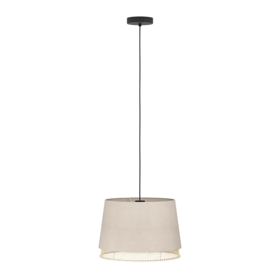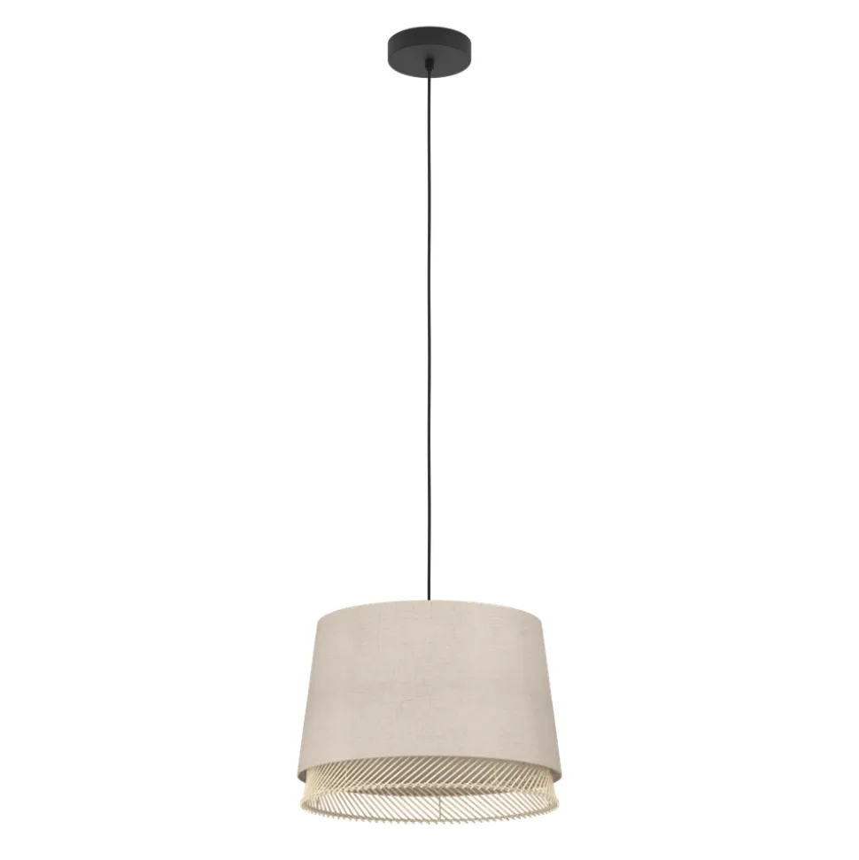 Eglo TABLEY hanglamp staal zwart / textiel, hout natuurlijk, bruin H: 1100 mm | Ø 380 mm