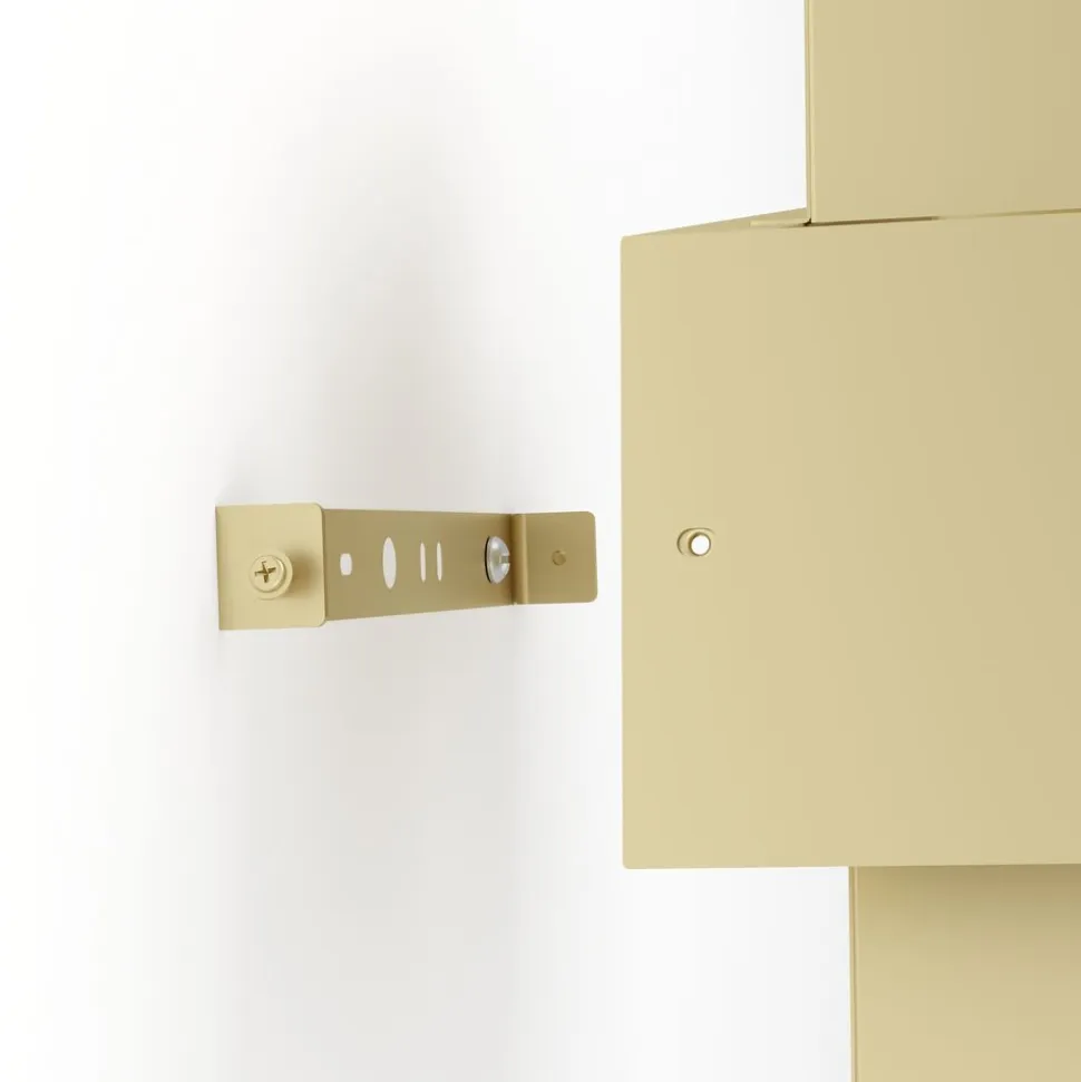 De TIMPAROSSA wandlamp bestaat uit een goudkleurig metalen lichaam met drie parallelepipeda die in een hoek ten opzichte van elkaar zijn geplaatst. De openingen boven en onder de lamp zorgen voor een comfortabele, indirecte verlichting naar boven en beneden op de muur. De wandlamp past perfect in minimalistische interieurs en biedt moderne verlichting voor elke ruimte – of het nu in de keuken, woonkamer, slaapkamer, hal of eetkamer is. De afgebeelde lamp wordt niet meegeleverd. Het armatuur is geschikt voor alle lichtbronnen met E27 voet.