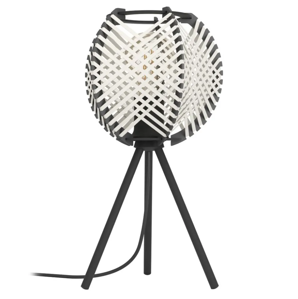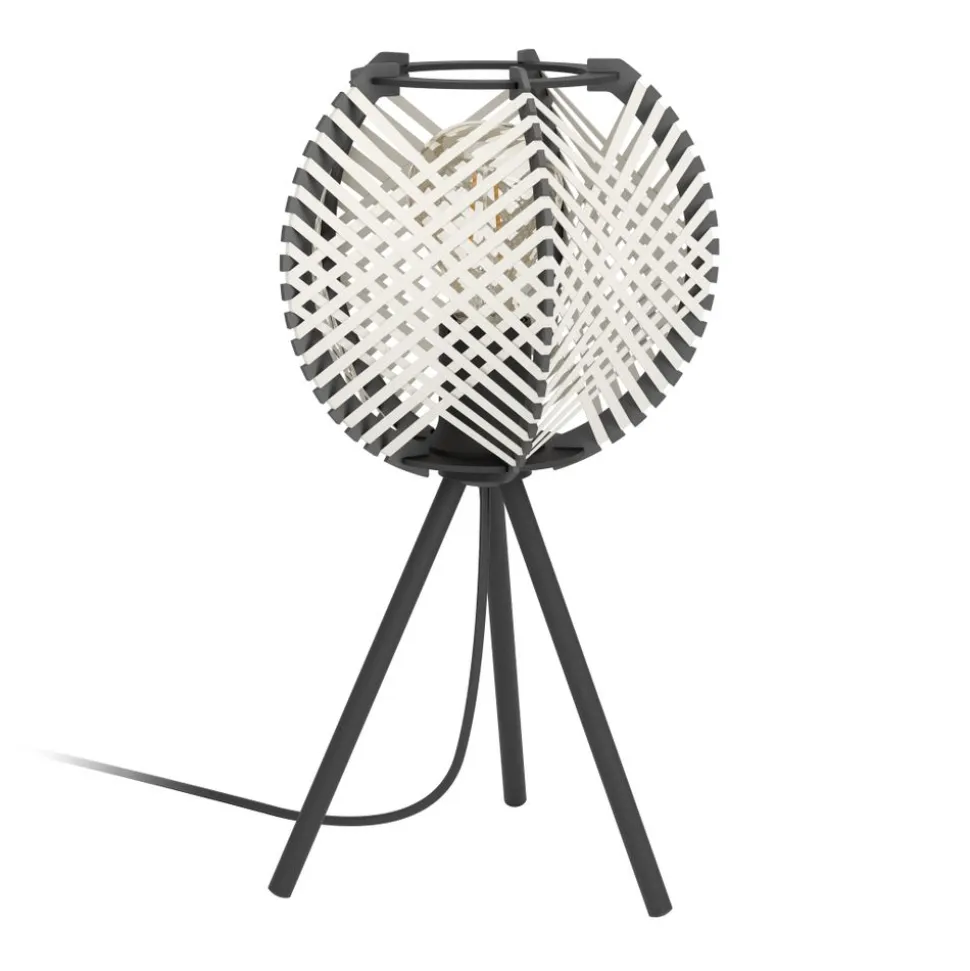 De WAVERTON tafellamp met een zwart houten driepikkel basis en witte kap van geweven touw staat zowel in een moderne als natuurlijke woon- of slaapkamer uitzonderlijk goed. Pas hier een warme E27 lichtbron (niet inbegrepen) op toe, en je hebt een gezellige invulling voor in elke donkere hoek.