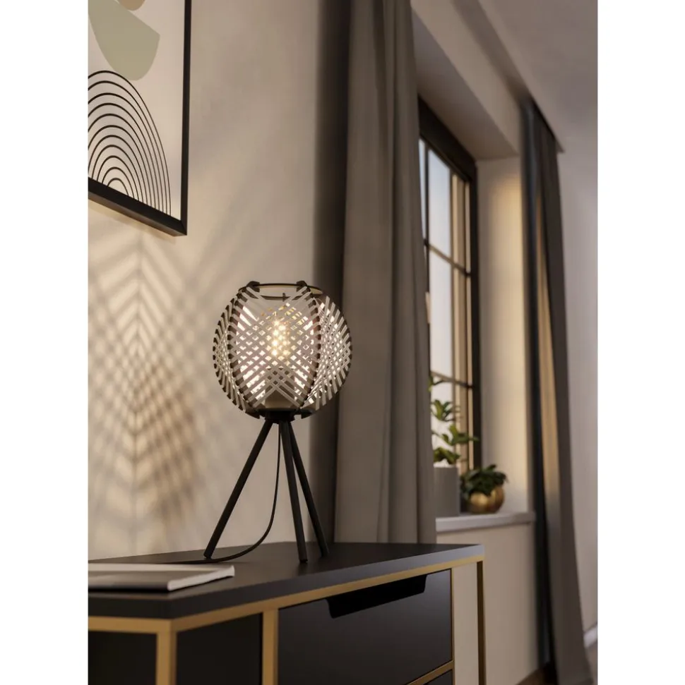 Eglo WAVERTON Tafellampen staal zwart / textiel, hout wit, zwart H: 400 mm | Ø 220 mm