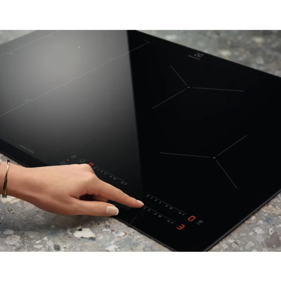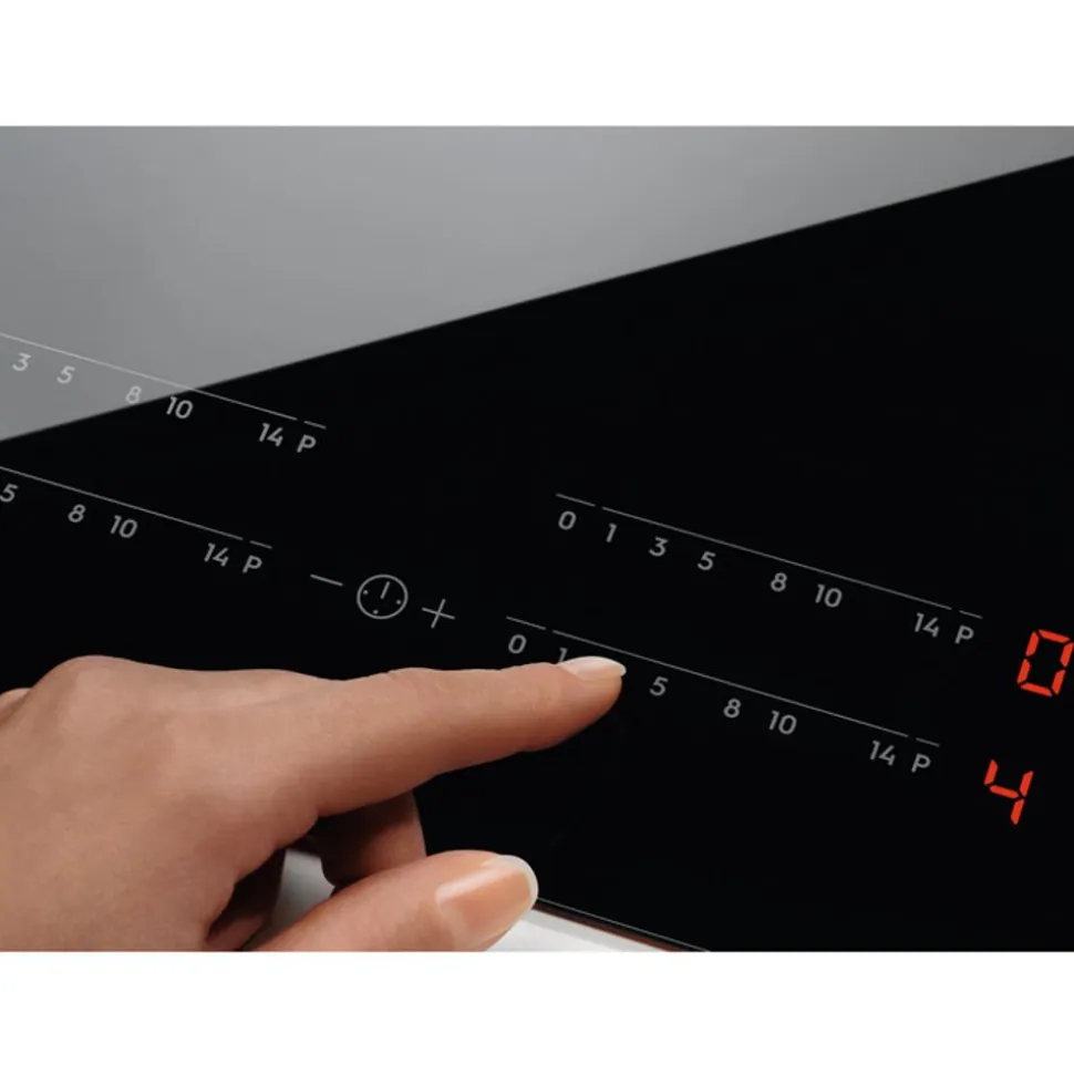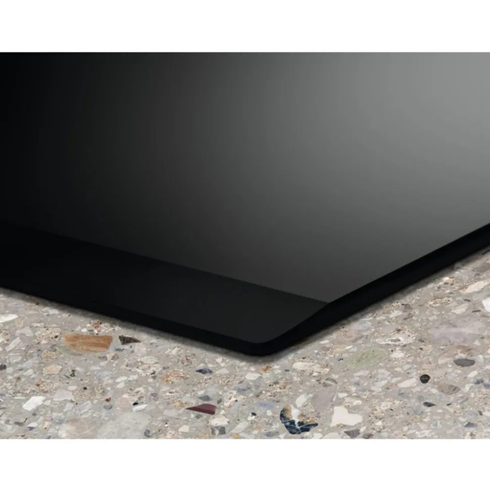 Inductietechnologie betekent dat de warmte snel wordt geleverd en precies op de juiste plek, waardoor de omliggende zones koel en veilig blijven. Deze reageert ook direct op temperatuurveranderingen. Het gladde oppervlak is bovendien gemakkelijk te reinigen.