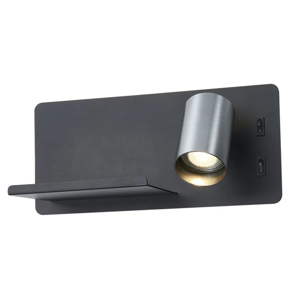 Fantasia DUSK wandl rechts + USB GU10 (excl) + LED 7W 2700K zwart + geb staal