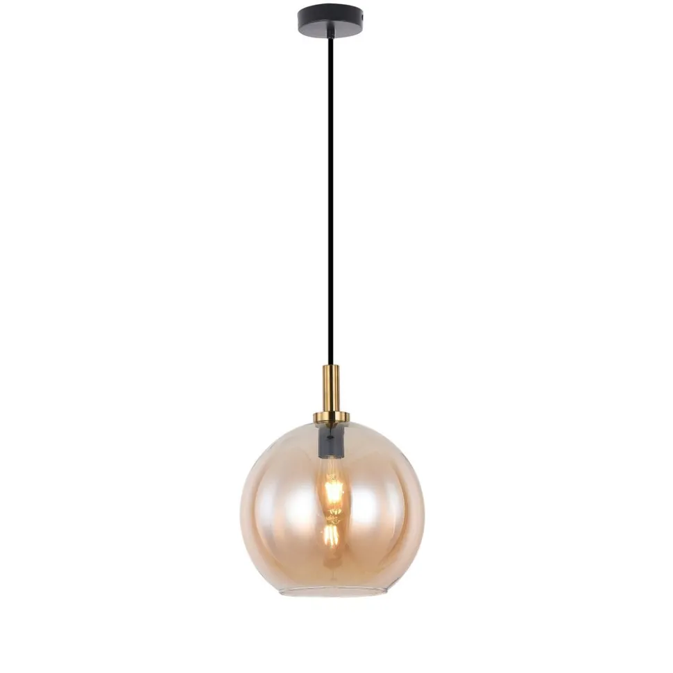Fantasia OSIRA Pendel E27 Zwart + goud, amber glas Ø300mm