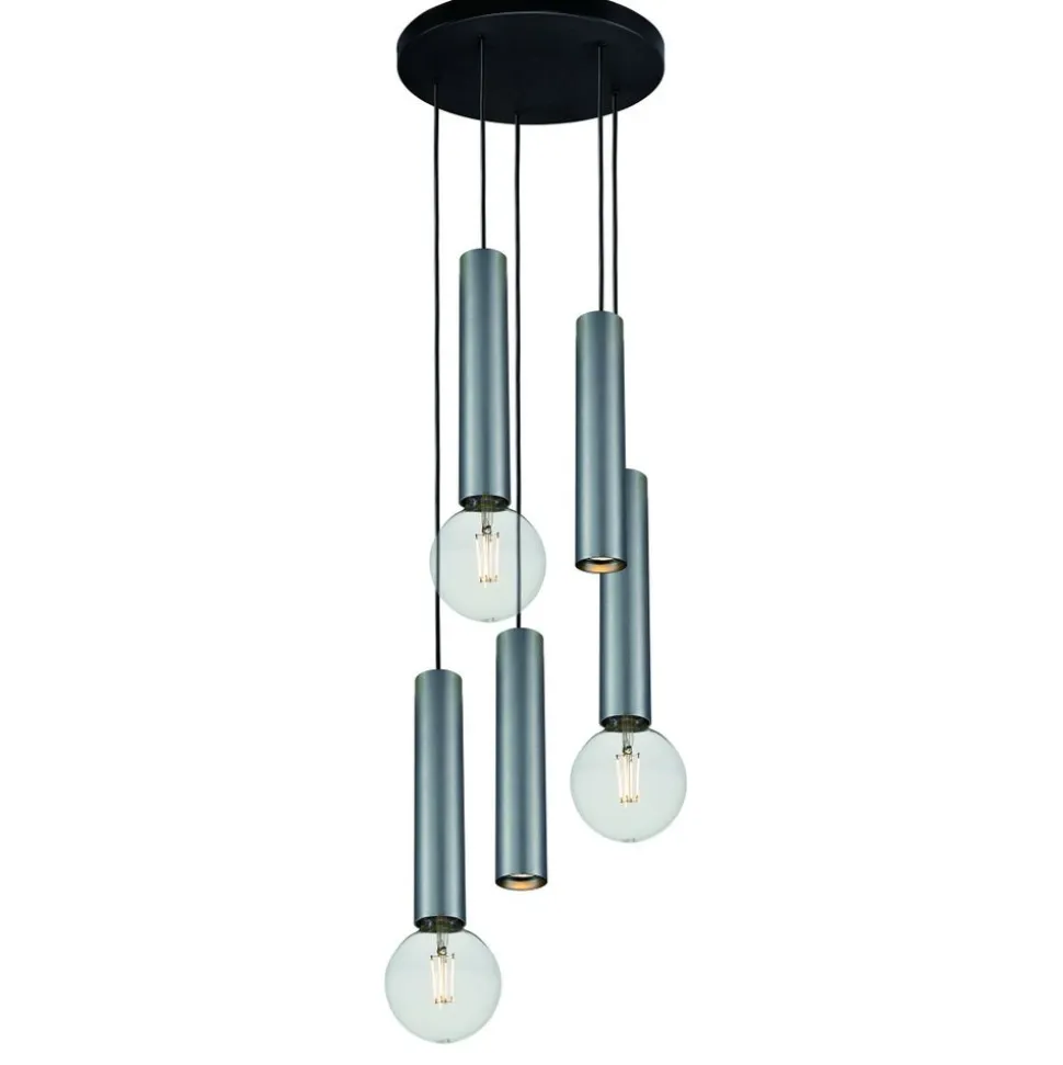 Fantasia TABOO pendel 5L 2xGU10 (excl) 3xE27 (excl) zwart + geborsteld staal