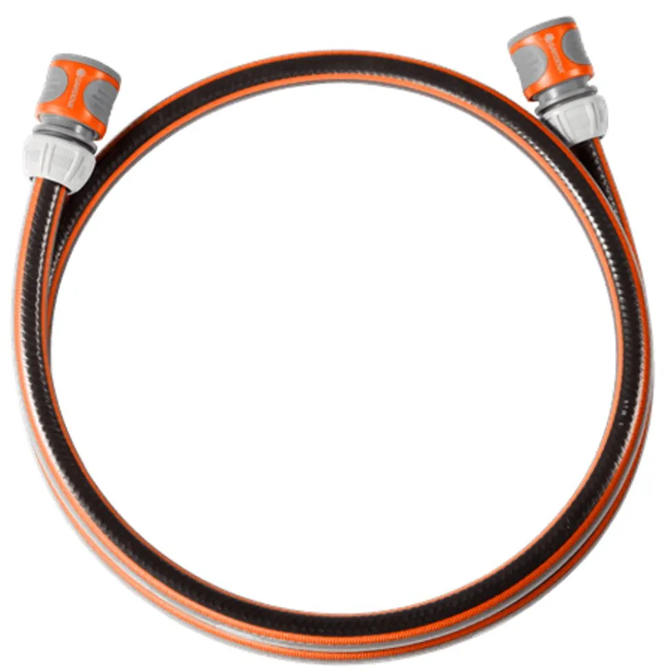 Voor aansluiting van een slangenwagen/-houder op de waterkraan. Compleet met 1,5 m Comfort FLEX slang, 13 mm (1/2″), met Original GARDENA System accessoires (1 x art.nr. 18201 en 2 x art.nr. 18215). De slang zelf heeft een lengte van 150 cm en bestaat uit een nieuwe FLEX slang van 13mm (1/2″) en is drukbestendig tot 25 bar. Voor het eenvoudig aansluiten van een slangenwagen aan een waterkraan.