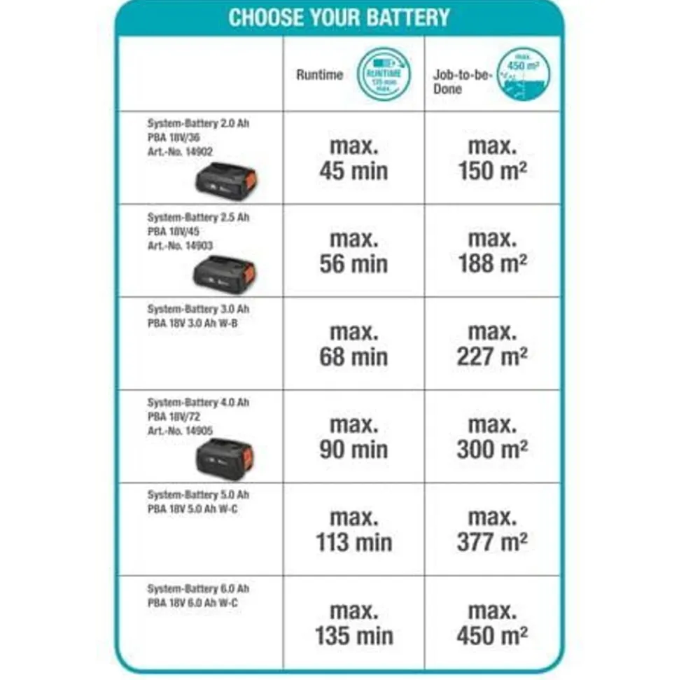 Dankzij een duidelijk zichtbare LED-indicator direct op het gereedschap ben je altijd op de hoogte van het huidige laadniveau, zodat je weet wanneer het tijd is om een ??pauze te nemen om het op te laden of om een ??andere accu aan te sluiten. De heggenschaar is compatibel met alle accu’s van de 18V POWER FOR ALL ALLIANCE. Afhankelijk van het type accu dat wordt gebruikt, kan het product een accuduur van maximaal 135 minuten bereiken en tot 450 vierkante meter heg snoeien.