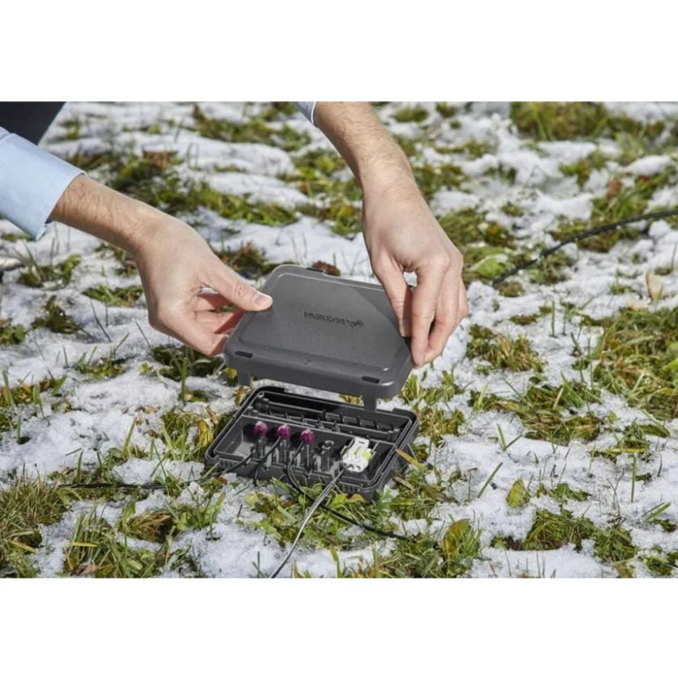 De GARDENA Winter Cable Protection Box biedt u een veilige opslag voor de draden en connectoren van uw GARDENA SILENO robotmaaiers. Dankzij de robuuste kunststof box kunnen de kabeleinden buiten het maaiseizoen worden opgeborgen en beschermd. De praktische draadopslag is het ideale accessoire voor de bescherming van kabels wanneer uw GARDENA robotmaaier en het laadstation in de winter niet worden gebruikt. Op deze manier kunt u uw blootliggende draden en connectoren beschermen tegen weersinvloeden.