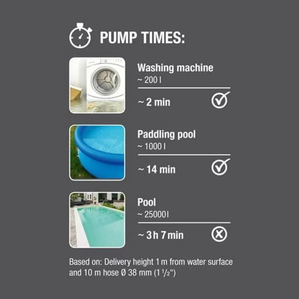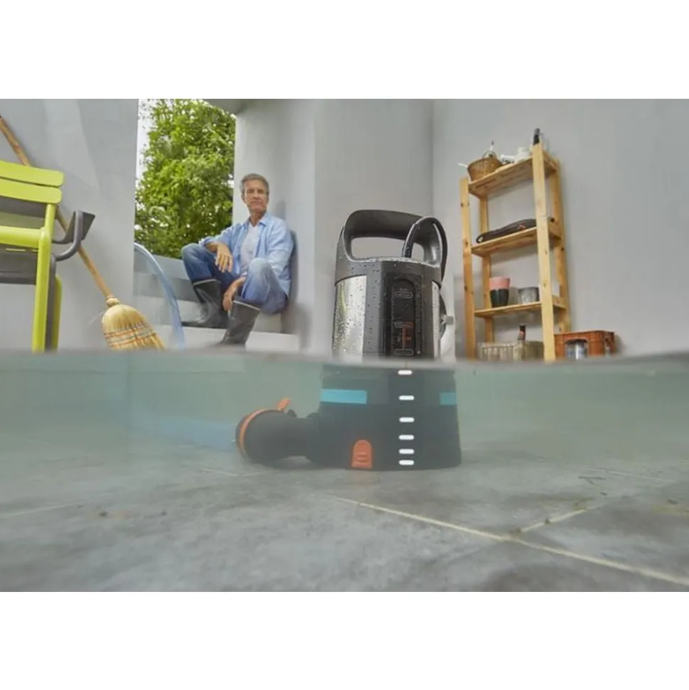 De helderwaterpomp 11000 Aquasensor van GARDENA, Europa’s toonaangevende merk voor hoogwaardige tuingereedschappen, met meer dan 40 jaar expertise in drainage-, besproeiings- en huispompen. Voel de kracht van GARDENA pompen met deze uiterst krachtige en efficiĆ«nte dompelpomp met tal van innovatieve functies. Uw kelder is overstroomd door opkomend grondwater of een lekkende wasmachine? De regentonnen moeten nog voor de winter worden leeggepompt? U bent op zoek naar een efficiĆ«nte drainagepomp om uw zwembad leeg te pompen? Zowel in deze specifieke gevallen als in tal van andere mogelijke scenario’s zal deze energiebesparende en bijzonder krachtige pomp een onmisbare aanvulling blijken te zijn op uw huishoud- en tuingereedschapskist. De helderwaterpomp 11000 Aquasensor heeft een vermogen van 450 W en pompt tot 11000 liter helder of licht vervuild water per uur met een druk van 0,7 bar en een maximale opvoerhoogte tot 7 m. Met een vlakke aanzuiging van slechts 1 mm krijgt uw vloer een gemakkelijk schoon te vegen resultaat. Dit is echt een pomp met hoge prestaties en een laag energieverbruik. Wat de helderwaterpomp 11000 Aquasensor echt onderscheidt van de gewone helderwaterdompelpompen van GARDENA, zijn de moderne en innovatieve functies van de digitale LED Aquasensor. Deze innovatie maakt gebruik in smalle schachten mogelijk en de in- en uitschakelhoogtes van de pomp kunnen nauwkeurig worden ingesteld met touch control. Zo kan de pomp bijvoorbeeld al vanaf een waterstand van 5 mm automatisch gaan lopen – ideaal om kelders tegen overstroming te beschermen. De Aquasensor meet het actuele waterpeil zonder direct contact en geeft de waarde weer met gemakkelijk af te lezen LED’s. Een handige timerfunctie en intuĆÆtieve aanraakbediening zijn eveneens inbegrepen. De Aquasensor sluit het risico van drooglopen uit en beschermt de pomp tegen mogelijke schade. Maar niet alleen de interne werking en de zelfbeschermingstechnologieĆ«n van de Clear Water Pump 11000 Aquasensor van GARDENA zullen indruk op u maken. De externe behuizing is van topklasse als het gaat om duurzaamheid en ontwerp. Het roestvrijstalen deksel ziet er niet alleen goed uit, maar beschermt de pomp ook effectief tegen schade van buitenaf. De motoras heeft een keramische coating met drievoudige afdichting inclusief oliekamer voor nog meer duurzaamheid. Bovendien heeft de dompelpomp een al even nuttige ingebouwde functie voor een maximaal debiet of het stoppen van drooglopen. De eenvoudig te gebruiken flow boost voeten kunnen de pomp omhoog brengen, als vlakzuigen niet nodig is om de pompprestaties te verhogen. Uiteraard kunnen diverse slangen van verschillende afmetingen op de pomp worden aangesloten dankzij het nieuwe, gemakkelijke GARDENA slangaansluitsysteem. Dit maakt het gebruik van deze pomp nog veelzijdiger en eenvoudiger. De helderwaterpomp 11000 met innovatieve Aquasensor van GARDENA is functioneel, intuĆÆtief en eenvoudig te bedienen.