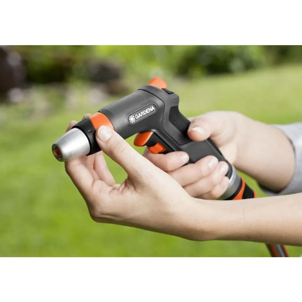 De stevige GARDENA Premium reinigingssproeier is geschikt voor zowel reinigen als besproeien. Als de watertoevoer continu moet zijn, kunt u de pulstrigger vergrendelen. Vermoeidheid van de hand wordt zo voorkomen.