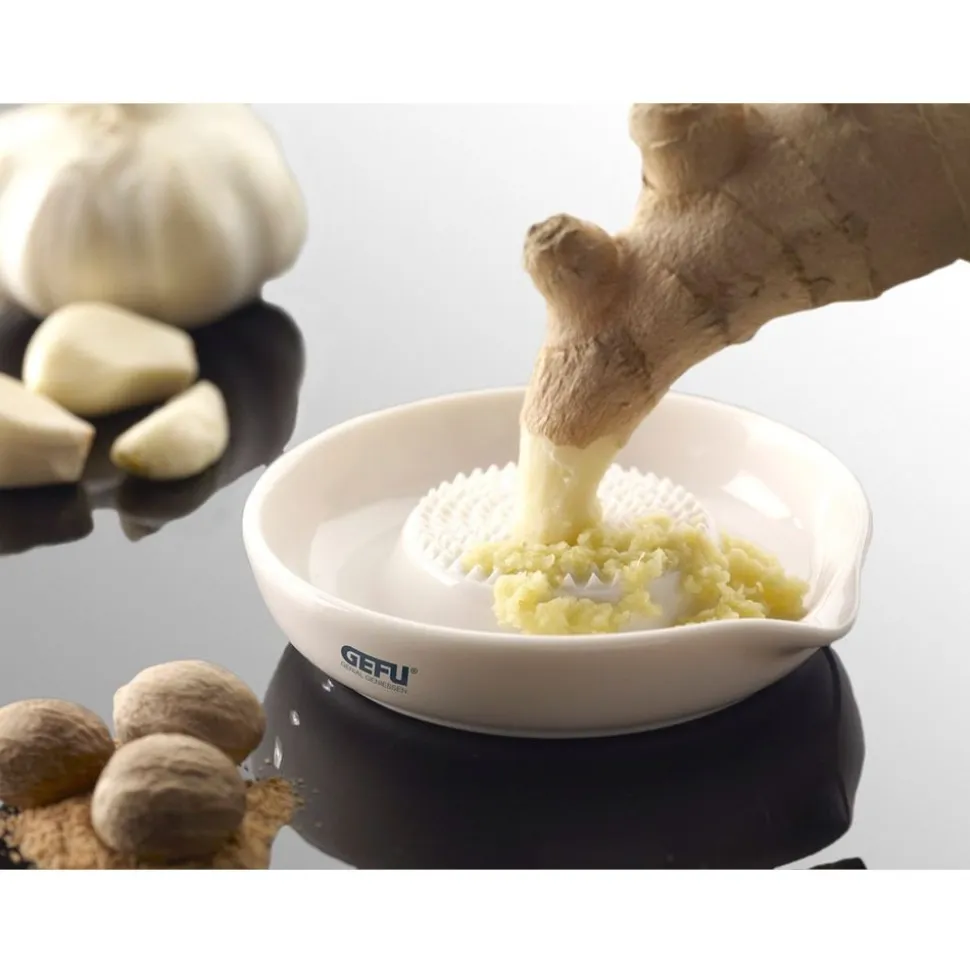 Japanse keramische rasp met extreem harde en scherpe tanden voor een fantastisch raspresultaat. Specerijen of groenten zoals gember, nootmuskaat, knoflook, wortelen en radijsjes veranderen in een papachtige puree. Een siliconen rand zorgt voor een antislip stand.