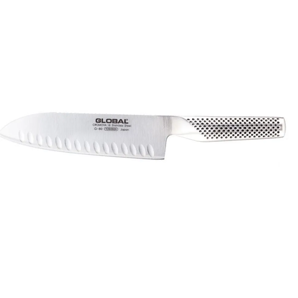 Herkenbaar door de vormgeving. Zoals beschreven bij groentemessen het typisch afgeronde snijvlak voor het vergemakkelijken van de hakkend-snijdende beweging. Oriëntaalse messen worden bij Global soms uitgevoerd met de zogenaamde DEBA slijping. Het snijvlak is hier aan één kant geslepen in een nog kleinere hoek dan de traditionele Global messen voor nog meer scherpte en precisie. DEBA messen zijn alleen door rechtshandigen te gebruiken. Tegenwoordig worden oriëntaalse messen uitgevoerd met kuiltjes in het lemmet. Voordeel is dat er lucht ontstaat tussen lemmet en ingrediënt zodat er minder kleefvorming ontstaat.