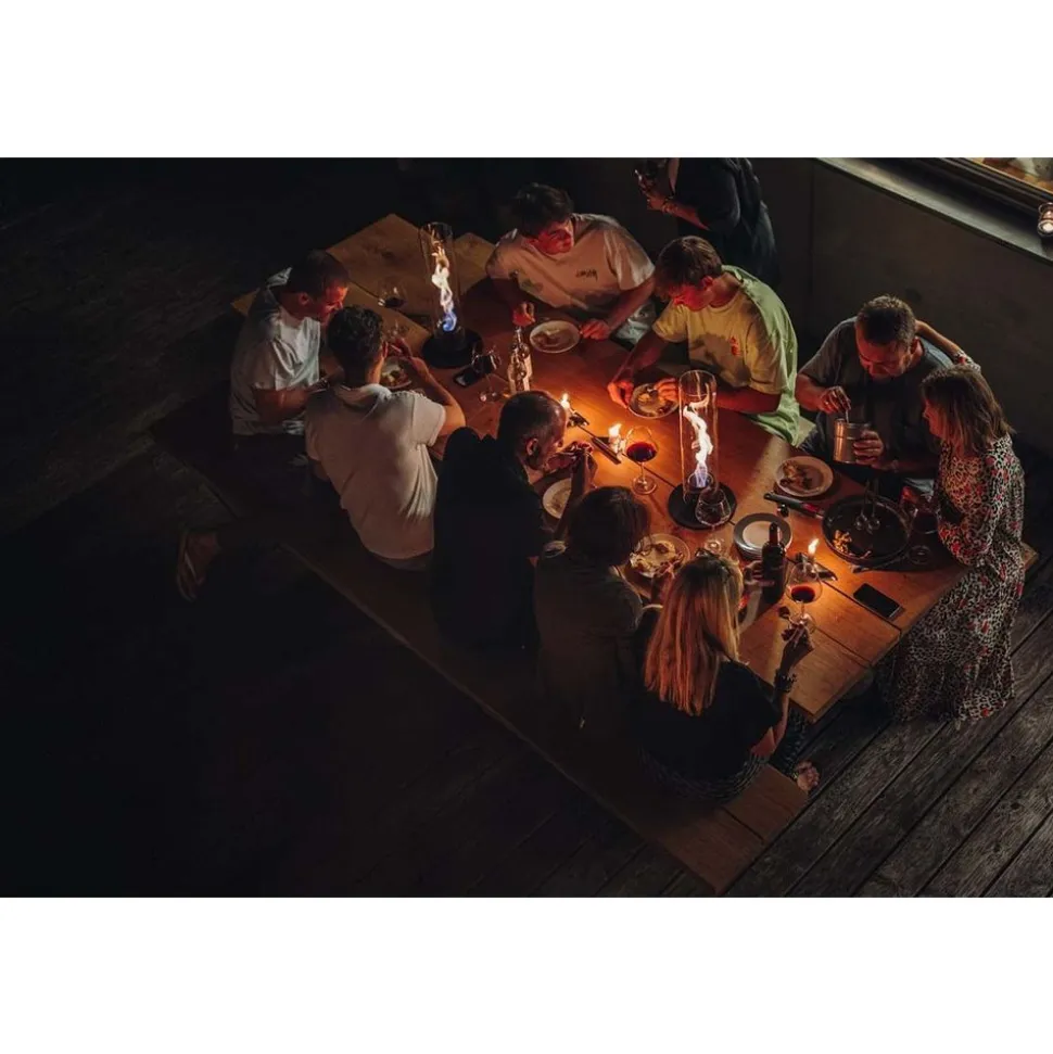 SPIN – een wilde werveling van vlammen in een decoratieve glazen cilinder tovert de fijnste kampvuursfeer op je balkon,