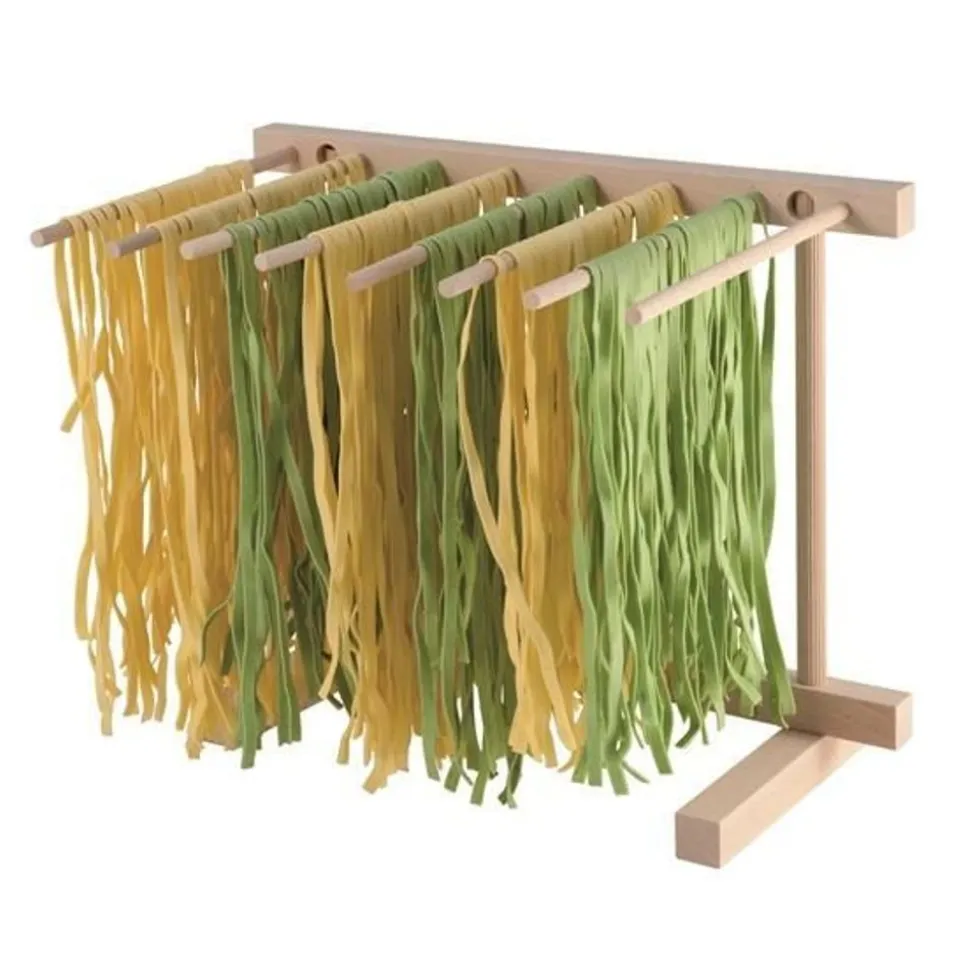 Heb je verse pasta gemaakt en wil je deze laten drogen? Dan biedt dit pastadroogrek van Inno Cuisinno een goede oplossing. De droger heeft 8 armen van 21 cm lang en is zo’n 28 cm hoog, zodat je voldoende droogruimte hebt. Na gebruik kun je het deel met de droogarmen los halen voor compact opbergen. Het pastadroogrek is gemaakt van beukenhout.