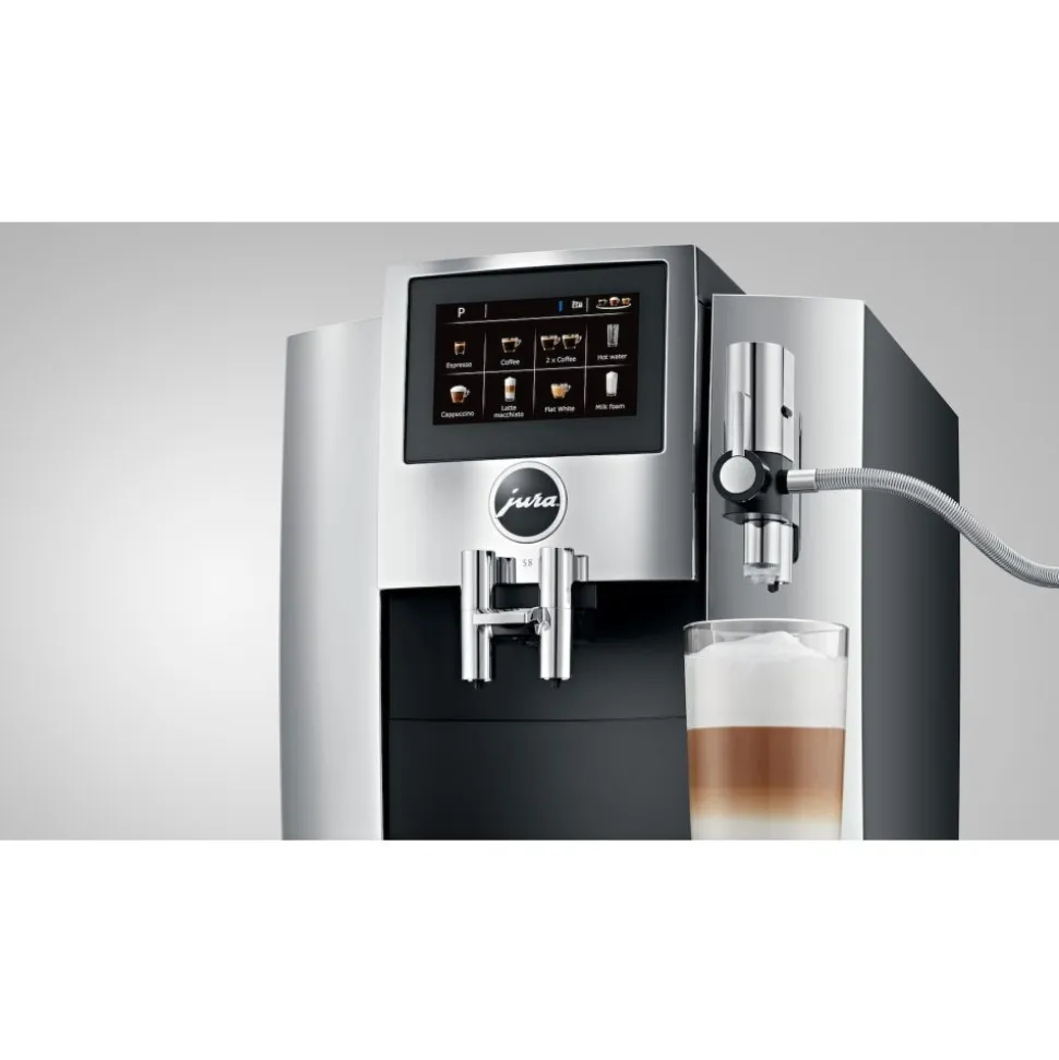 De stijlvolle nieuwe JURA S8 Chroom (EA) straalt straalt door zijn design in alle opzichten kwaliteit en luxe uit. Deze volautomaat heeft elementen uit de beste compacte modellen, uit het premiumsegment en zelfs een vleugje GIGA.De imponerende diversiteit aan specialiteiten en het overweldigende koffieresultaat overtuigen zelfs de grootste fijnproevers.