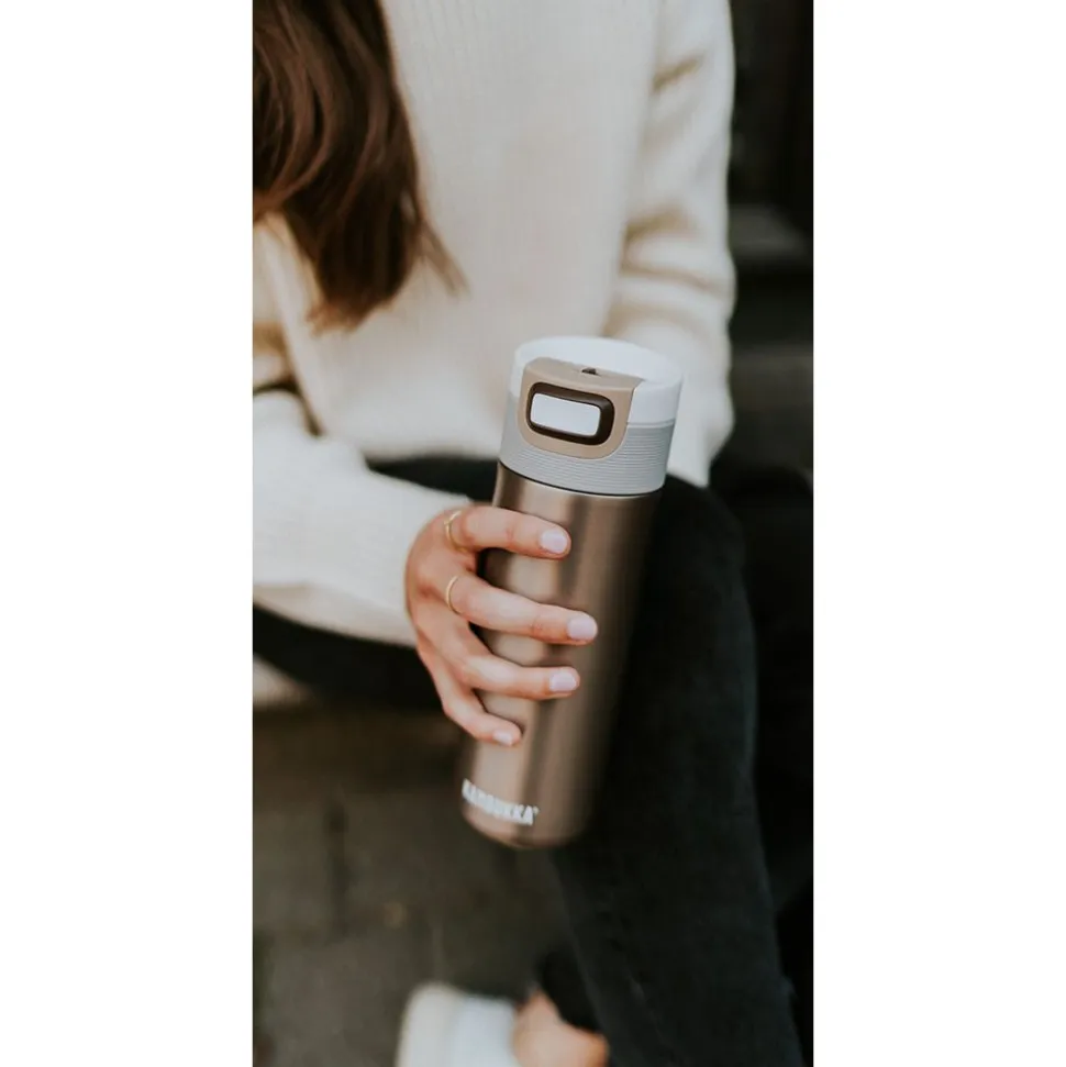 De Etna thermosfles serveert je een hete koffie voor als je onderweg bent, of om je namiddagdipje op het werk door te komen. Waar je ook bent, je kunt altijd rekenen op het 3 in 1 deksel: druk om een slok te nemen, open om de thermosfles te gebruiken als een beker en sluit om er weer op uit te trekken. Dankzij de Snapclean®- mechanisme kan je het deksel efficiënt reinigen.