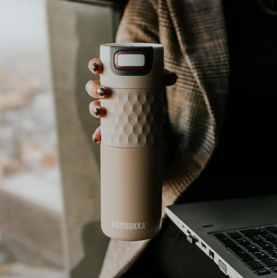De Etna thermosfles serveert je een hete koffie voor als je onderweg bent, of om je namiddagdipje op het werk door te komen. Waar je ook bent, je kunt altijd rekenen op het 3 in 1 deksel: druk om een slok te nemen, open om de thermosfles te gebruiken als een beker en sluit om er weer op uit te trekken. Dankzij de Snapclean®- mechanisme kan je het deksel efficiënt reinigen.