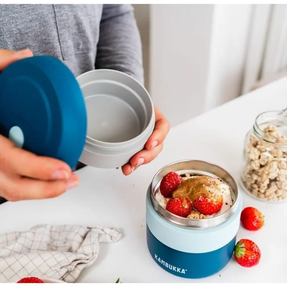 In dit Kambukka-snackdoosje kun je je knapperige ontbijt, lunch of avondmaaltijd bewaren, apart van je meer vochthoudende lekkernijen (zoals yoghurt of soep), zodat je maaltijd lekker droog en knapperig blijft.