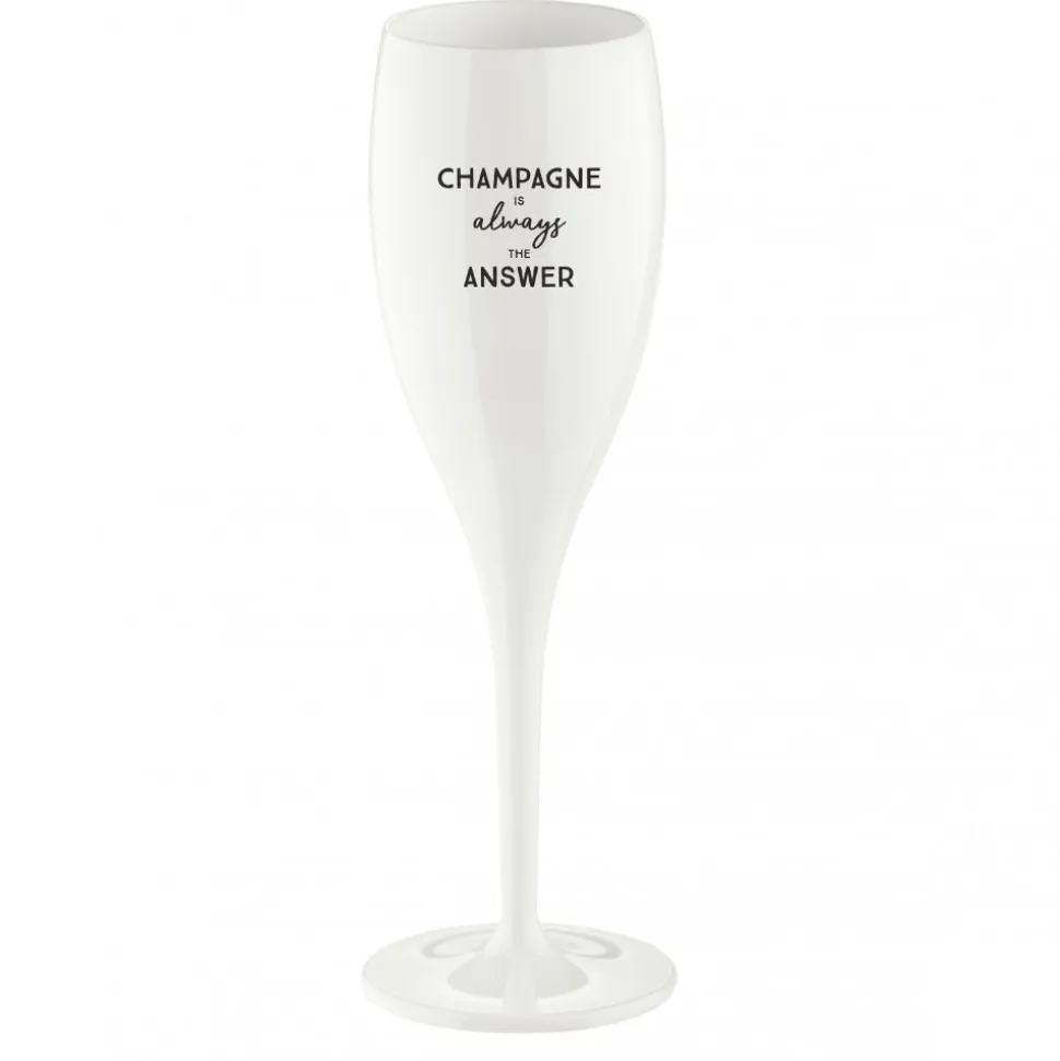 Het hoogwaardige materiaal isoleert en houdt de dranken koel, de hoge vorm zorgt ervoor dat deze langer borrelt. Daarnaast is het glas nagenoeg onbreekbaar en daardoor perfect te gebruiken bij evenementen, in clubs, op het strand, op de boot en overal waar gebroken scherven minder geluk hebben.