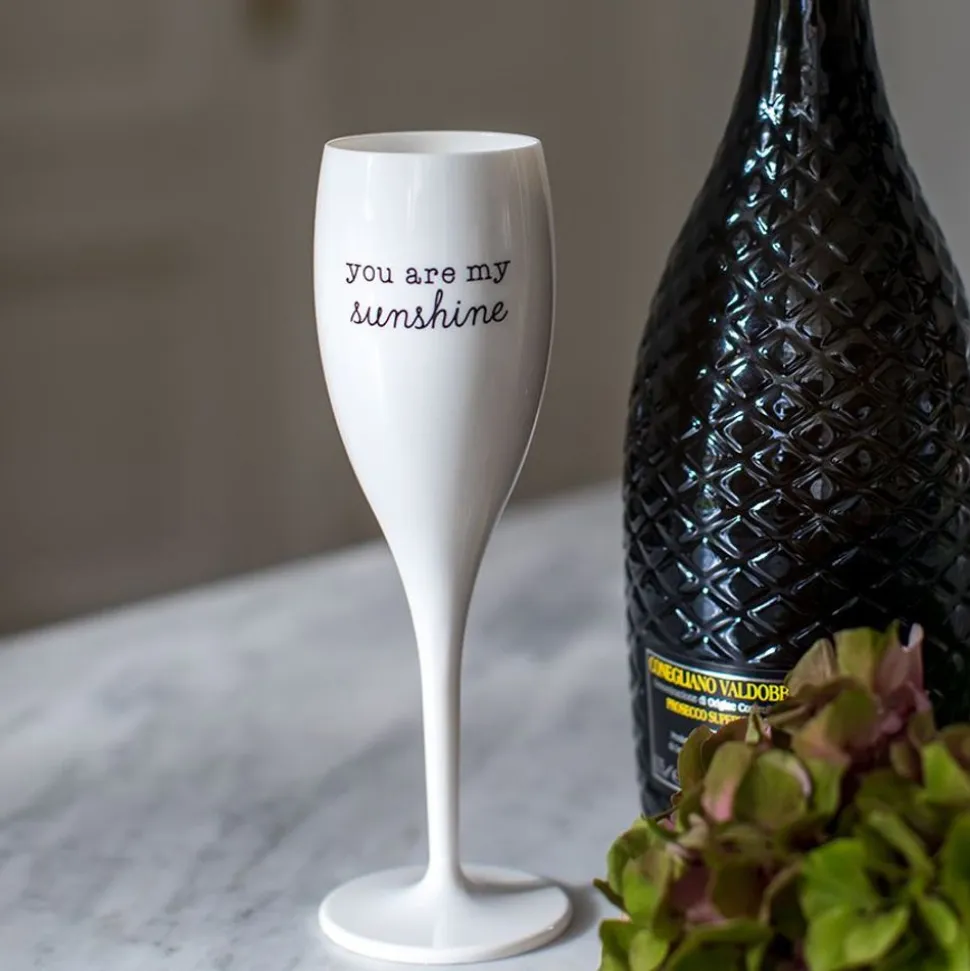 Het hoogwaardige materiaal isoleert en houdt de dranken koel, de hoge vorm zorgt ervoor dat deze langer borrelt. Daarnaast is het glas nagenoeg onbreekbaar en daardoor perfect te gebruiken bij evenementen, in clubs, op het strand, op de boot en overal waar gebroken scherven minder geluk hebben.