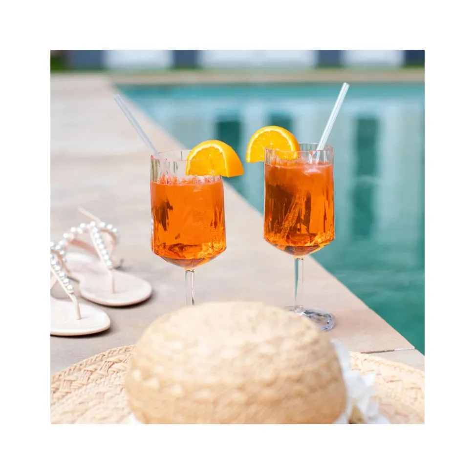 Met zijn grote kelk is dit elegante en langstelige glas perfect voor aperitieven en cocktails zoals Aperol Spritz, Hugo of Lillet. Het volumineuze glas biedt voldoende ruimte voor ijsblokjes en fruit, en het isolerende hightech materiaal houdt de drank lang aangenaam koel.