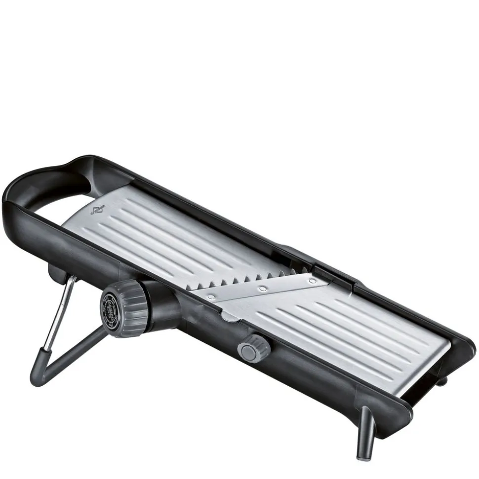 Onze lievelingskleur? Kleurrijk! Als het om gezonde voeding gaat, zijn groenten en fruit in alle kleuren van de regenboog een stuk beter. Met de groentesnijder COMFORT van KÜCHENPROFI krijgt u de smaak te pakken. Het tovert wortels, paprika’s en koolrabi om in knapperige staafjes, zorgt ervoor dat komkommerschijfjes in de salade golven en dat alles vlekkeloos verloopt met schijfjes tomaat. Voor nog meer flexibiliteit bij het bereiden van de vitamines zijn de snijdikte en -breedte instelbaar. De groentesnijder staat stevig op antislipvoetjes, is voorzien van een opvangbak voor snijresten en een beschermkap voor de hoogwaardige roestvrijstalen messen.