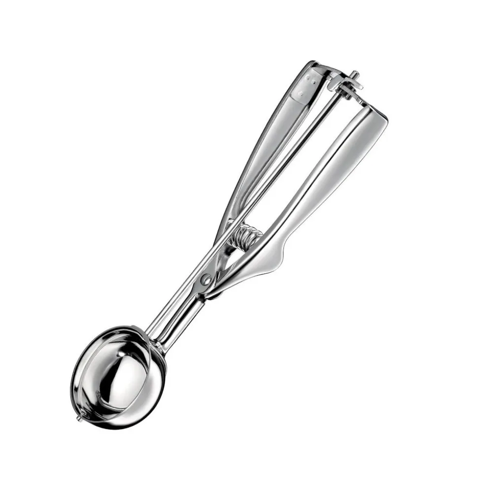 Eén chocolade en vanille alstublieft! Dit zijn de populairste ijssmaken van Duitsland. Maar ook bij de andere varianten van Amarena tot Lemon smelt jong en oud weg. Met de KÜCHENPROFI ijsschep serveer je de koude lekkernij zoals in een ijssalon. De ballen zijn niet te groot en perfect gevormd – de ogen eten er immers mee. De keukenhulp is gemaakt van smaakloos, roestvrij staal. De veer in het stevige handvat zorgt voor een gemakkelijke bediening. Haal het licht ontdooide ijs er met de lepel uit en knijp in het handvat en de bal glijdt op het bord. De portier is ook praktisch voor het serveren van rijst, desserts of luchtige roomkaas. Tussen gebruik door verdwijnt hij in de vaatwasser om zich op te frissen.