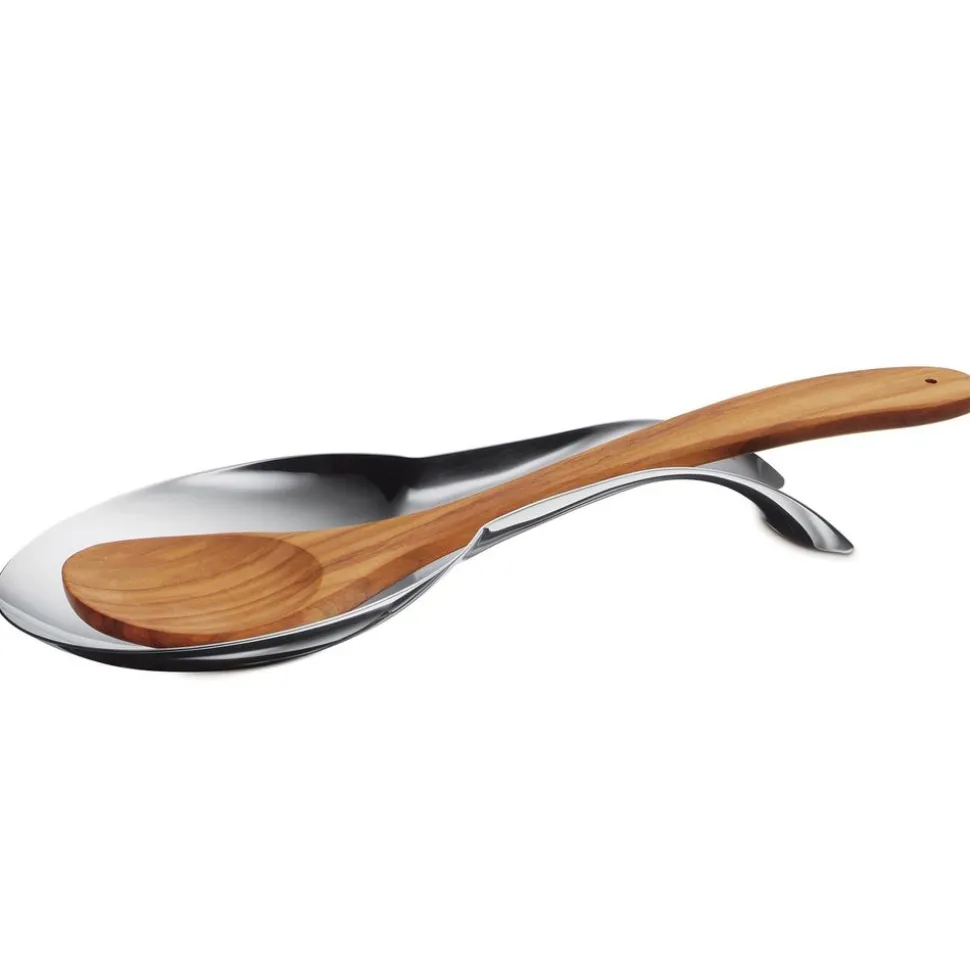 De uien in de pan moeten dringend worden gekeerd. Waar is de houten lepel? De houten lepelstandaard en lepellegger van KÜCHENPROFI besparen u het hectische zoeken. De fraaie accessoires kunnen niet over het hoofd worden gezien en voorkomen bovendien morsen op het werkblad. De houten lepelstandaard van roestvrij staal heeft een porseleinen kom waarin zowel de houten lepel als een spatel of garde passen. De lepelsteun van roestvrij staal heeft de vorm van een maxilepel en laat meteen zien wie hier geparkeerd staat terwijl je ingrediënten hakt of de tafel dekt. Tip: De keukenhulpjes zijn een leuk cadeau voor hobbykoks.
