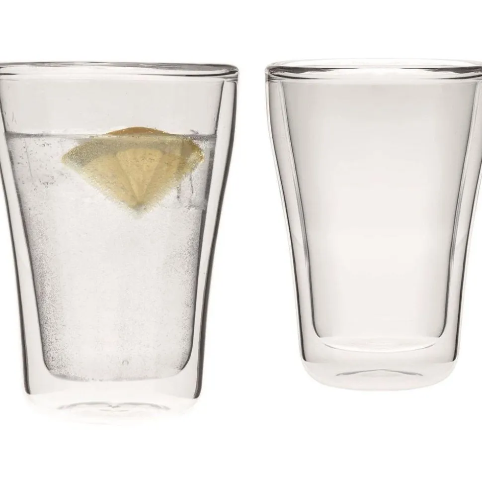 om te voorkomen dat je handen heet worden van het glas, drink je je koffie uit de duo dubbelwandige glazen van leonardo. doordat deze glazen dubbelwandig zijn, wordt alleen het binnenste glas heet en kun je de buitenkant van het glas zorgeloos vastpakken. je gebruikt de glazen voor warme dranken als koffie en thee. daarnaast zijn deze glazen ook geschikt voor sap.