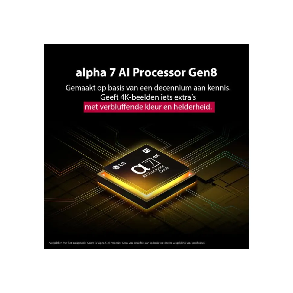 - 4K-afbeeldingskwaliteit, opgeschaald visueel en surroundgeluid van de alpha 7 4K AI Processor Gen8