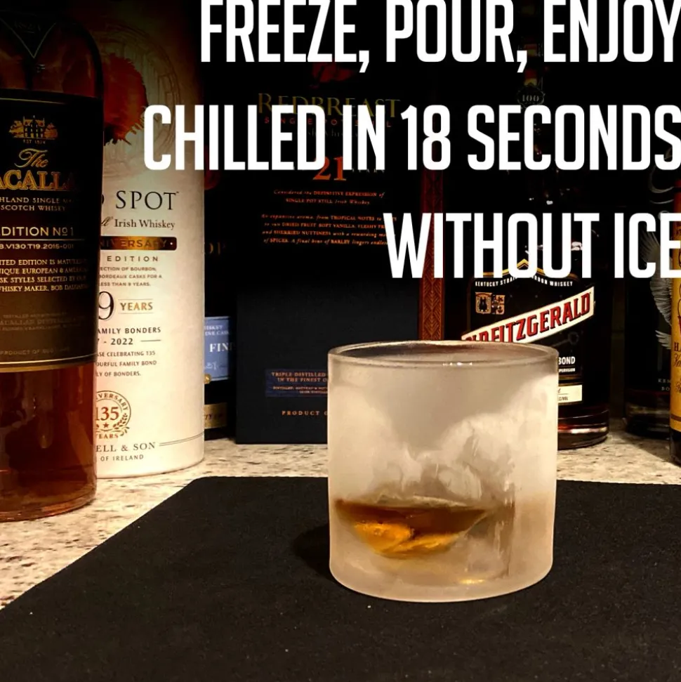 Het gepatenteerde Chill-Charge System™ koelt uw drankje in slechts 18 seconden. Laat snel whiskyaroma’s vrijkomen door de spirits zachtjes rond de vlakken van de Peaks te draaien