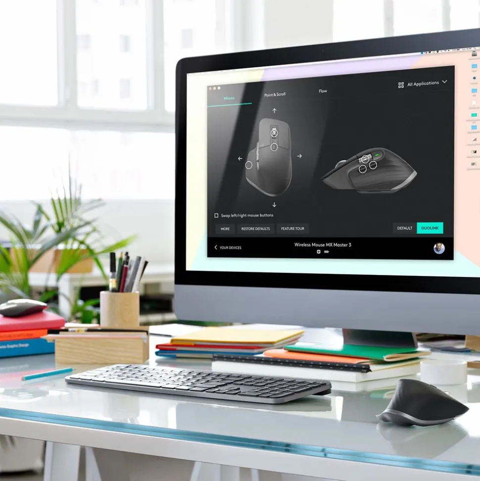 MX KEYS + MX MASTER 3 Combineer MX Keys en MX Master 3 voor een eersteklas look en feel, een naadloze workflow en geavanceerde functies.
