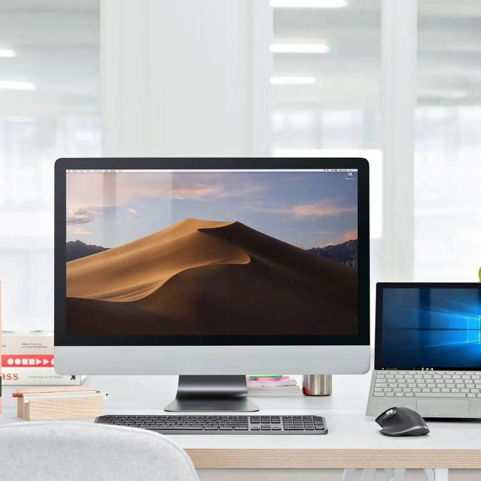 BEDIENING VAN MEERDERE COMPUTERS MX Keys werkt met ƩƩn vloeiende workflow op meerdere computers. Je kunt moeiteloos typen, kopiƫren en plakken tussen twee computers.