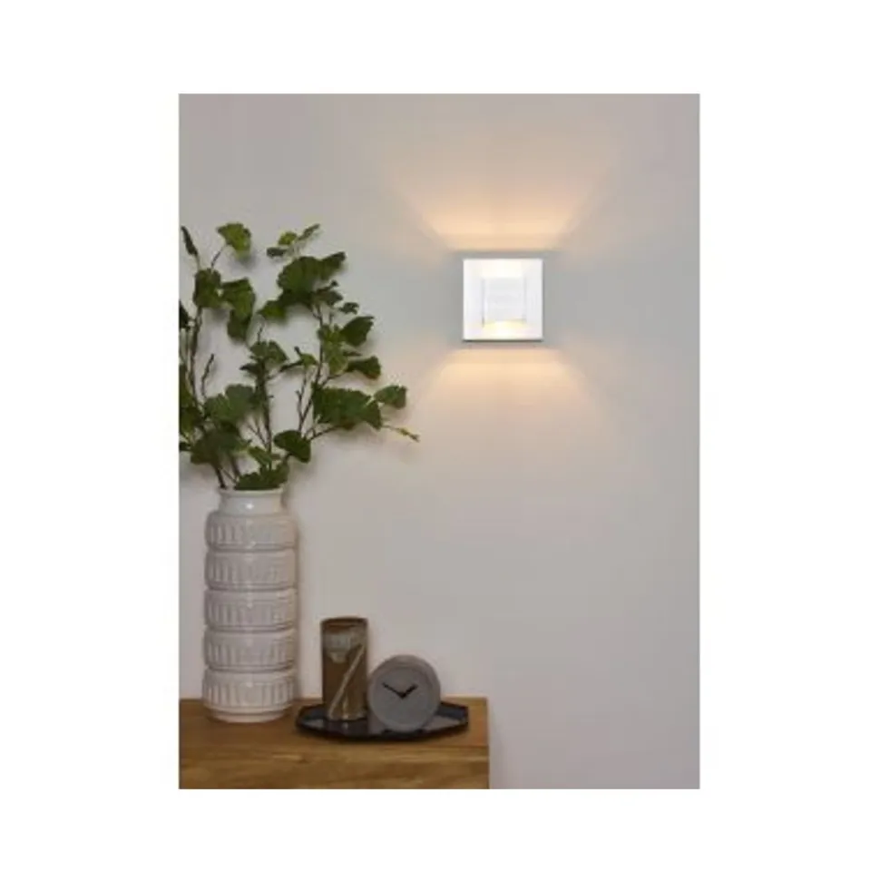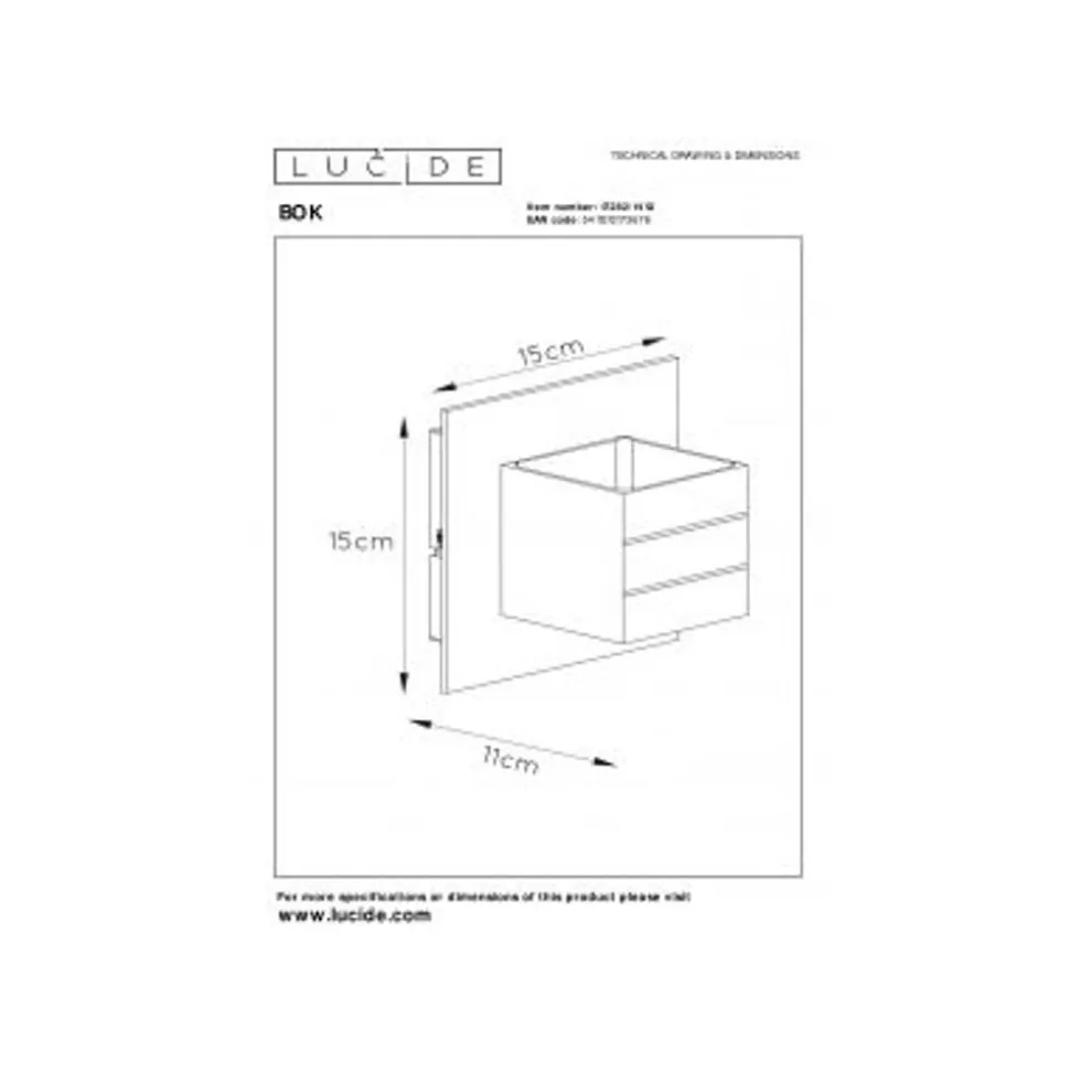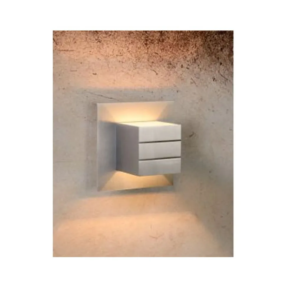 De wandlamp Lucide Bok 69 is een schitterend afgewerkt aluminium armatuur. Deze veel door architecten toegepaste wandlamp komt het best tot zijn recht op een mooie stuc wand of een stoere grof gemetselde muur. De Bok 69 geeft namelijk een prachtig zandloper lichteffect op de wand. Met een afmeting van 15cm x 15cm laat de Bok69 zich eenvoudig over een centraaldoos plaatsen. Dit stijlvolle armatuur is een echte meerwaarde voor elke ruimte. De Bok 69 is uitgevoerd met een G9 hoogvolt fitting. Vervang eventueel de traditionele G9 halogeen voor een energiebesparende al dan niet dimbare G9 LED lichtbron. LED of traditioneel halogeen, in ieder geval is de Bok 69 zeer eenvoudig dimbaar (met een basic in of opbouw dimmer – niet inbegrepen). De Bok 69 is er als 1 en 2-lichts variant en beschikbaar in de kleuren wit en aluminium.