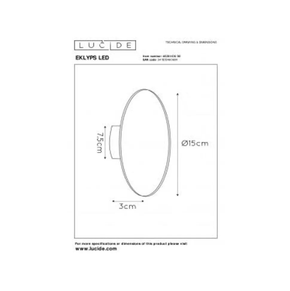 Lucide EKLYPS LED – Wandlamp – Ø 15 cm – LED – 1x7W 3000K – Zwart Lucide