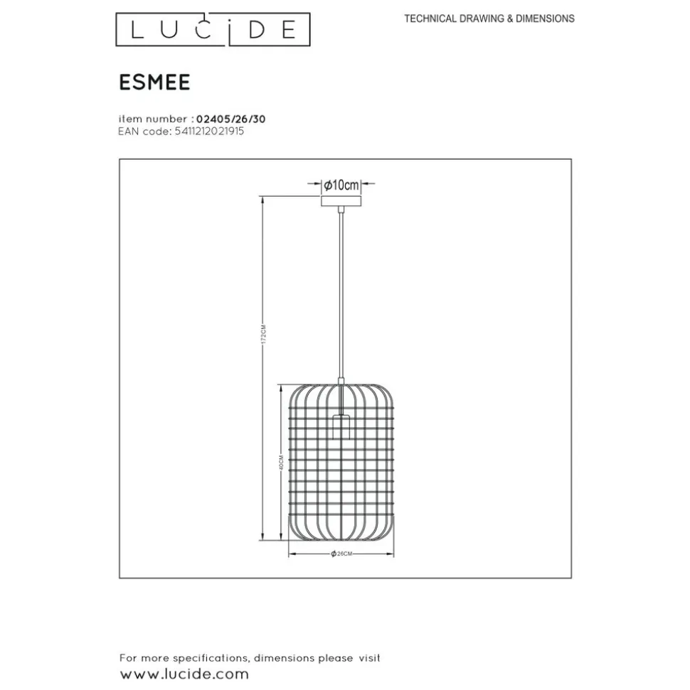 Lucide ESMEE – Hanglamp – Ø 26 cm – 1xE27 – Zwart Lucide