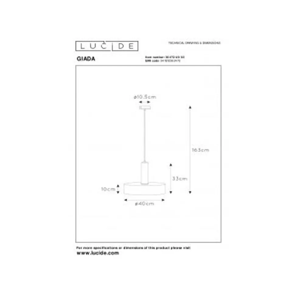 Lucide GIADA – Hanglamp – Ø 40 cm – 1xE27 – Mat Goud / Messing