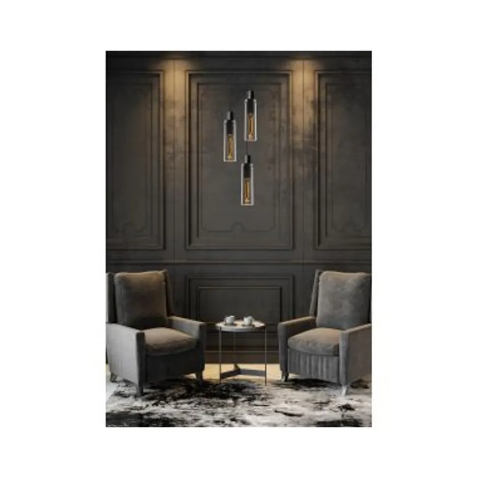 Lucide ORLANDO Hanglamp 3xE27/60W Zwart/Smoke glas