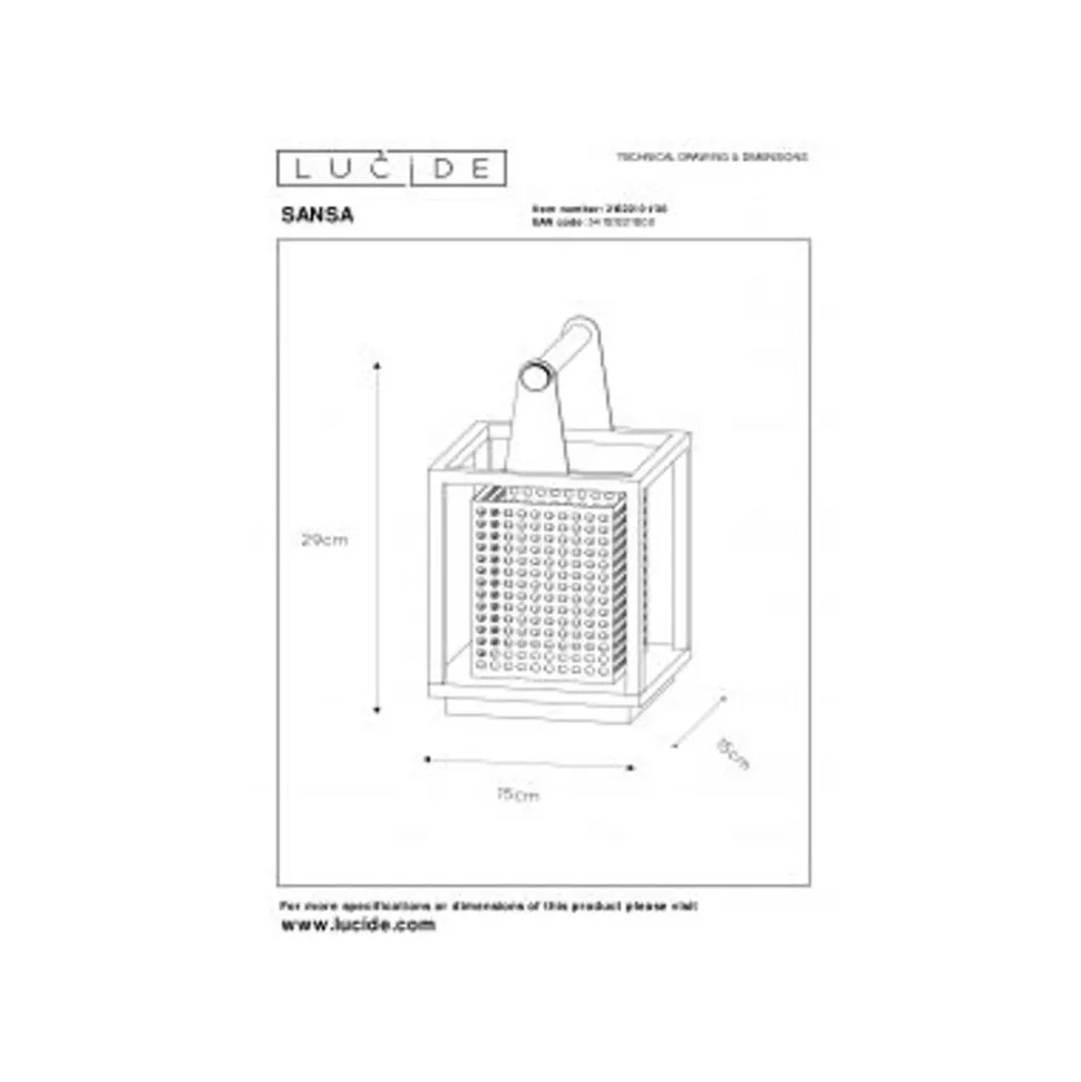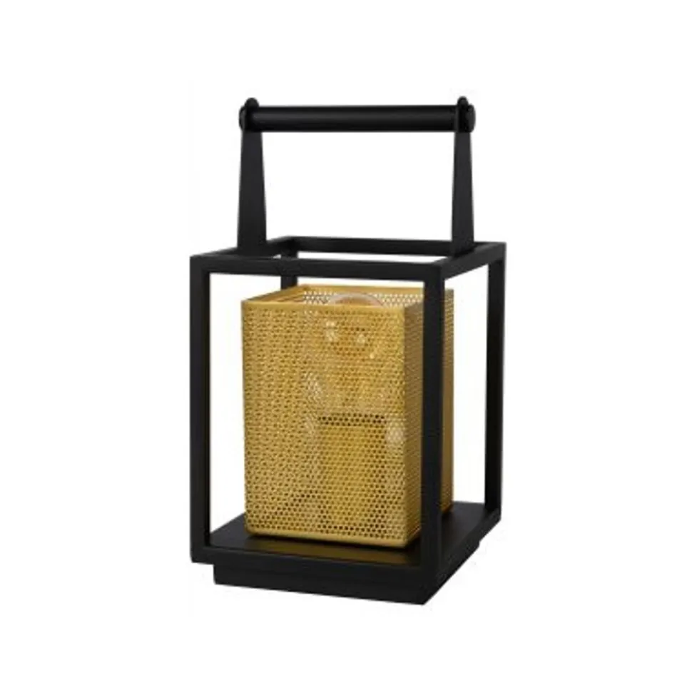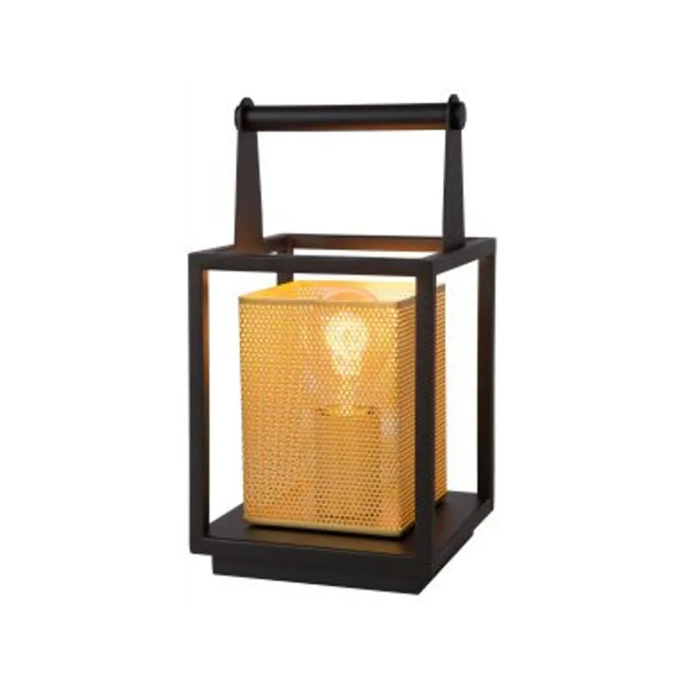 Deze tafellamp lijkt haast een mandje om mee te nemen. Het is een mandje gevuld met sfeer. Het zwarte frame gaat over in een handvat, waardoor deze variant van Sansa net wat meer opvalt en je haar ook makkelijk verplaatst. Het zwarte kader rondom een mat gouden geperforeerde kubus zorgen ervoor dat je Sansa perfect meeneemt in een modern of een klassiek interieur. Aan- en uitschakelen doe je met de schakelaar bevestigd op het snoer. Combineer met een gepaste ledlamp en geniet van deze sfeervolle tafellamp.
