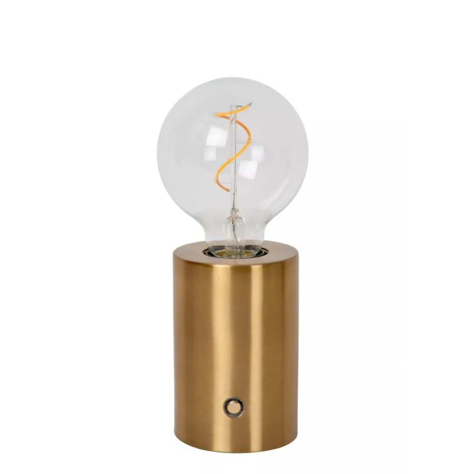Lucide VIVO – Oplaadbare Tafellamp – Accu/Batterij – Ø 8 cm – LED Dimb. – E27 – 1x1W 2700K – Mat Goud / Messing
