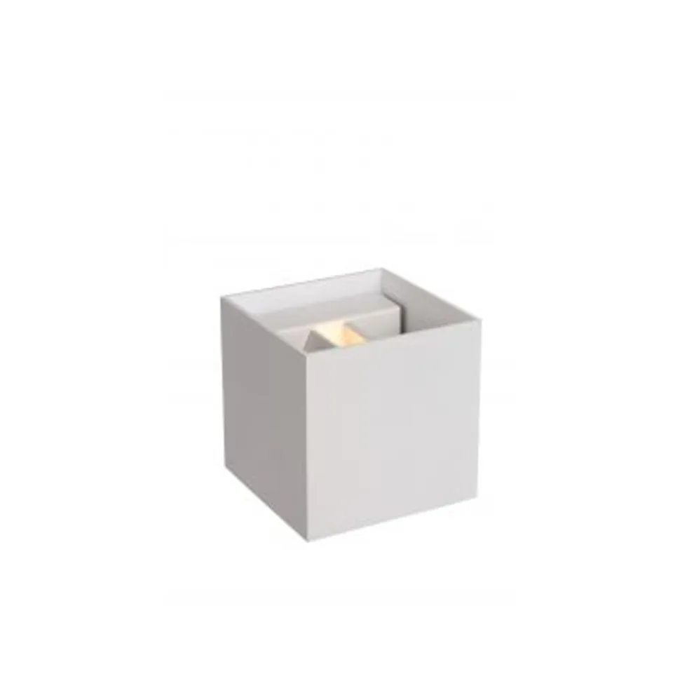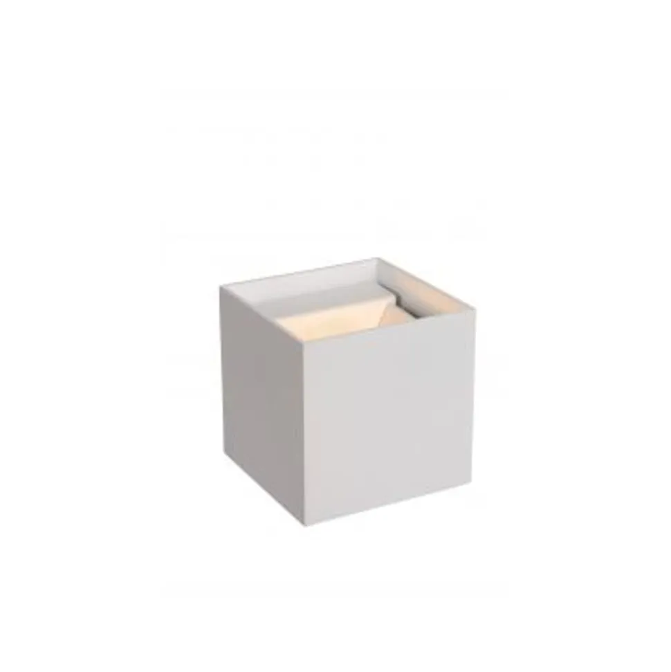 Een witte, strakke doos vol licht voor je muur. Deze kubus van Xio is een modern wandlicht met zijdes van 9,7 centimeter. Het aluminium frame maakt deze verlichting makkelijk te installeren en eenvoudig te verplaatsen. Klein, licht, maar een robuuste verlichting. Deze compacte verlichting is gespierd. Xio is compatibel met led-lampen voor maximaal 4W en een lichtkleur van 2700 K. Deze muurlampen met G9-fitting verlichten je slaapkamer en geven een klare, warme kijk op de dingen.