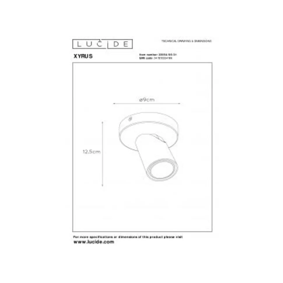 Lucide XYRUS Spot GU10/5W incl. DTW D9 H12.5cm Wit